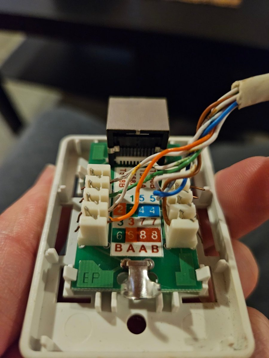 Sta Δημοσ. 17 Φεβρουαρίου Δημοσ. 17 Φεβρουαρίου Ευχαριστώ παιδιά! Βασικα, έχω αυτά τα 2 πριζάκια στα 2 άκρα καλωδίου που ενώνει 2 δωμάτια. Με βάση τα παραπάνω και στα 2 πριζάκια, βάζω απο κάτω αριστερά και με clockwise: πράσινο, πράσινο/λευκό, πορτοκαλί κ.ο.λ; Μάλλον πιο πάνω έχει συνδεθεί λάθος το πριζάκι....