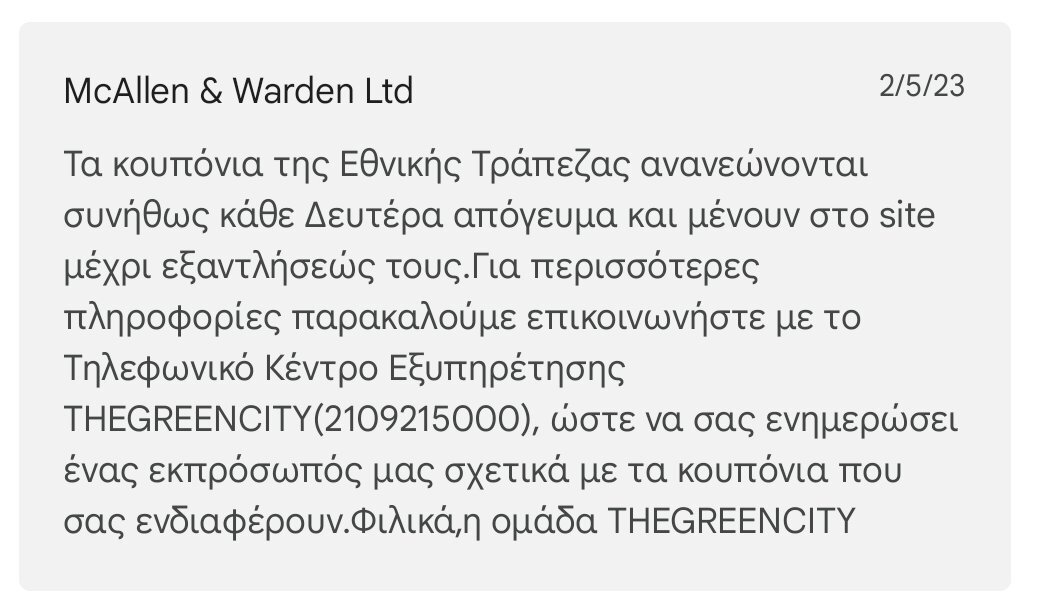 haokr Δημοσ. 24 Οκτωβρίου 2024 Δημοσ. 24 Οκτωβρίου 2024 Δεν έχω καταφέρει κι εγώ, δεν ξέρω αν ανανεώνεται κάποια στιγμή; Και αν πάρουμε τους πόντους go for more, στην εθνική πώς λειτουργεί αυτό; Είναι σαν έκπτωση σε αγορές; Ή πρέπει να είναι αγορά τουλάχιστον χ ευρώ; Γιατί οι άλλες προσφορές του greencity δεν πολύ αξίζουν Δεν έχω καταφέρει κι εγώ, δεν ξέρω αν ανανεώνεται κάποια στιγμή; Και αν πάρουμε τους πόντους go for more, στην εθνική πώς λειτουργεί αυτό; Είναι σαν έκπτωση σε αγορές; Ή πρέπει να είναι αγορά τουλάχιστον χ ευρώ; Γιατί οι άλλες προσφορές του greencity δεν πολύ αξίζουν Edit: κοίταξα από περιέργεια τις κριτικές της εφαρμογής στο play store και βρήκα αυτή την απάντηση σε μια κριτική