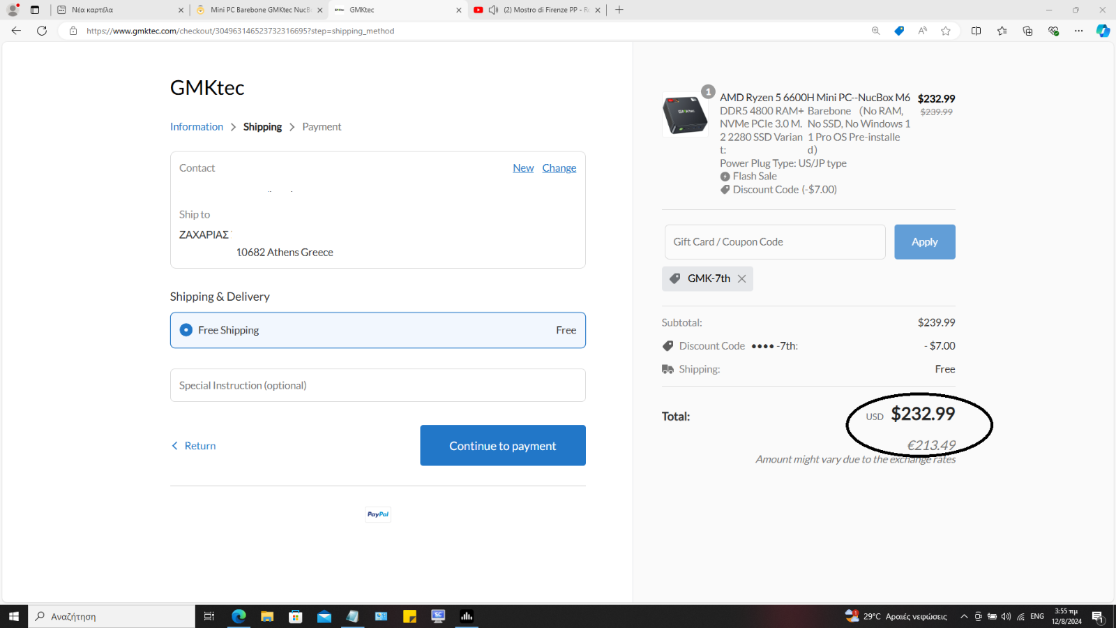 fagoura Δημοσ. 11 Αυγούστου 2024 Δημοσ. 11 Αυγούστου 2024 (επεξεργασμένο) 3 ώρες πριν, zacharis1955 είπε 214 € τελική τιμή με τον κωδικό GMK-7th. +1 αλλα 229 € το βλεπω με το κουπονι, το αλλο ειναι us εκδοση που δεν λεει οτι καλυπτει τελωνειο, οπως γραφει το Ευρωπαικο για αποστολη Ευρωπη. Για την ακριβεια, 250-7=243 $ (που τα υπολογιζει σαν 229 €). Επεξ/σία 11 Αυγούστου 2024 από fagoura