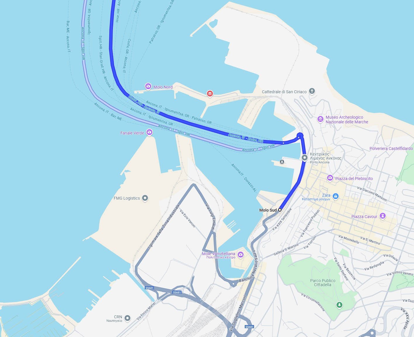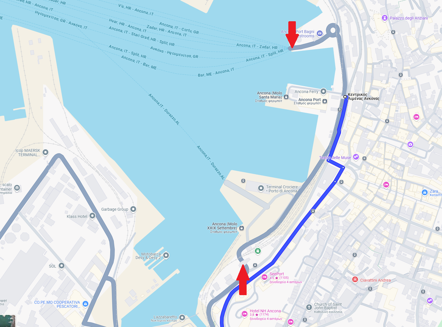Ukforthemoment Δημοσ. 4 Σεπτεμβρίου 2024 Δημοσ. 4 Σεπτεμβρίου 2024 Aν βάλεις Porto di Ancona, Molo Sud, 12, 60125 Ancona AN, Ιταλία σε πάει απο ξηρά. Molo είναι η αποβάθρα και μάλλον ο λόγος που σε πάει απο θάλασσα.