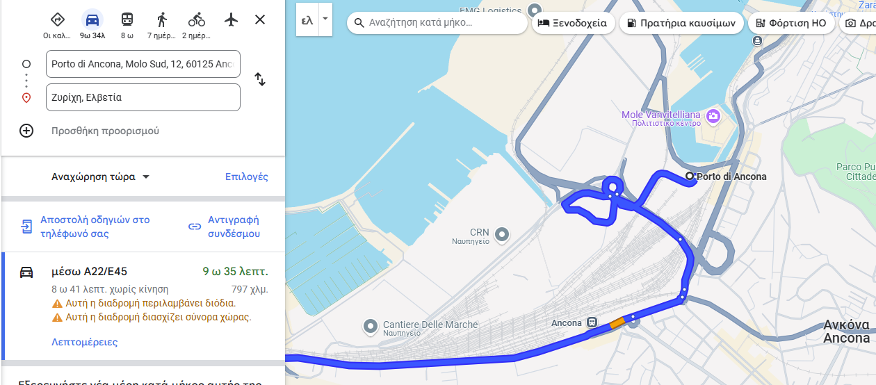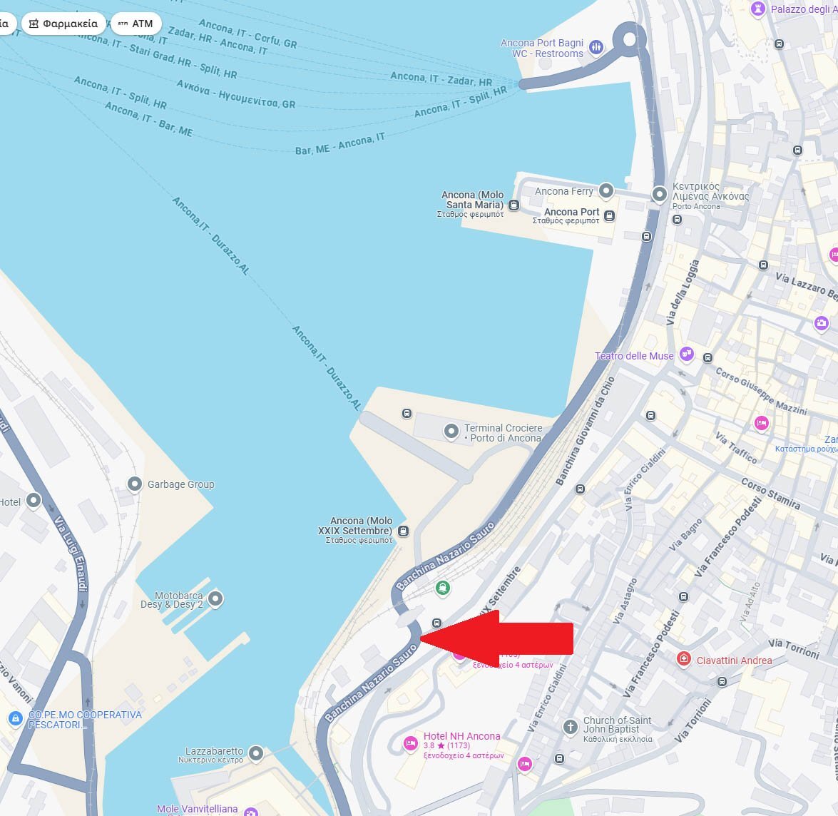 Ukforthemoment Δημοσ. 5 Σεπτεμβρίου 2024 Δημοσ. 5 Σεπτεμβρίου 2024 Δοκίμασε το porto Ancona ,Molo santa Maria 60121 (Ελπίζω να το δείχνει σωστά ο χαρτης απο κάτω,προορισμός Ελβετία)
