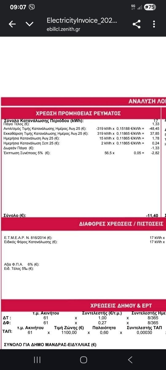 Σε τελικό λογαριασμό smart night -40%-5% δεν θα έπρεπε στις 17kwh  να εφαρμοστεί το - 40%σαν έκπτωση; έκανα αίτημα χθες για αμφισβήτηση καθώς και να εφαρμοστεί η έκπτωση απο τον συντελεστή χ όπως ειχαν πει. Επέστρεψα βέβαια αλλα δεν παίζει κάποιο ρόλο αυτο.