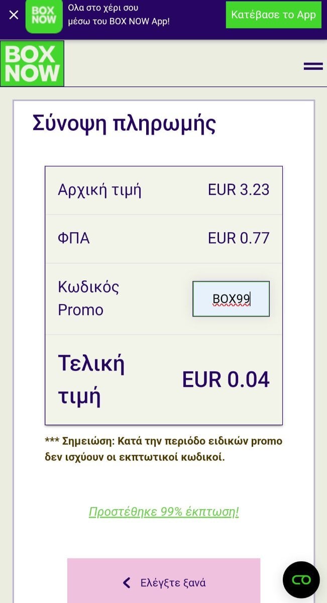 dreaming123 Δημοσ. 16 Σεπτεμβρίου 2024 Δημοσ. 16 Σεπτεμβρίου 2024 (επεξεργασμένο) https://boxnow.gr/ Με κωδικό ΒΟΧ99 πάει το μικρό πακέτο 0.02 και το μεσαίο 0.04 λεπτά. Τώρα αν είναι λάθος και πόσο θα κρατήσει άγνωστο. Επεξ/σία 16 Σεπτεμβρίου 2024 από dreaming123 5 1