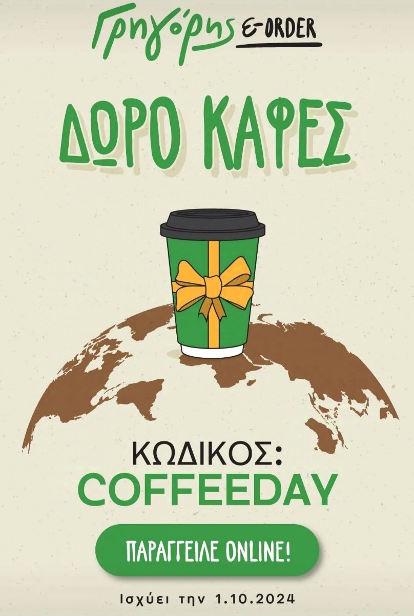 tonis1989 Δημοσ. 30 Σεπτεμβρίου 2024 Δημοσ. 30 Σεπτεμβρίου 2024 (επεξεργασμένο) ΜΟΝΟ για αύριο 01/10/24 Δωρεάν έναν καφέ ανά παραγγελία λογικά με τον κωδικό COFFEDAY Ισχύει μόνο για αύριο 1/10 και για παραγγελίες από το site https://www.gregorys.gr/ Επεξ/σία 30 Σεπτεμβρίου 2024 από tonis1989 6