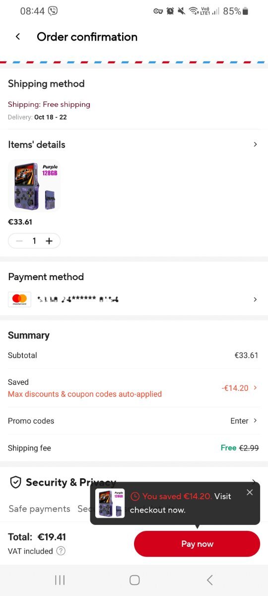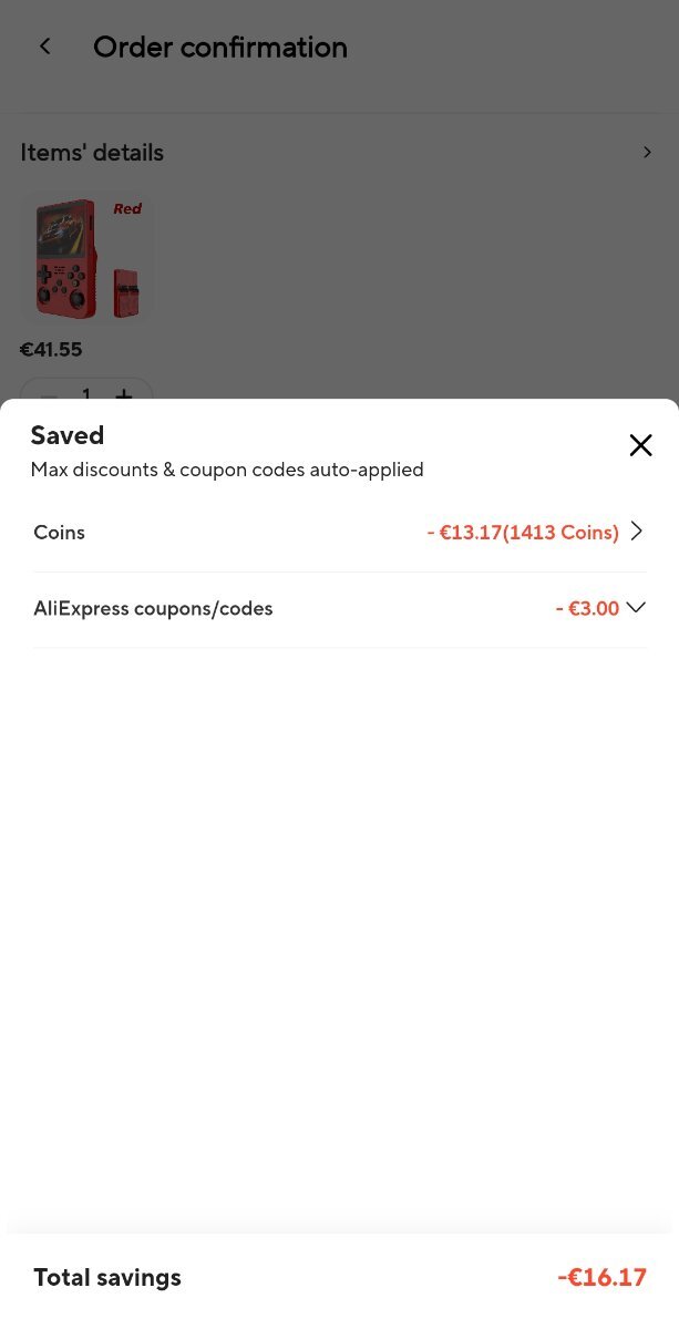 NSR00 Δημοσ. 7 Οκτωβρίου 2024 Μέλος Δημοσ. 7 Οκτωβρίου 2024 25 λεπτά πριν, dim_plo είπε Επανήλθε στα συνηθισμένα επίπεδα επιπλέον έκπτωσης με χρήση coins; 25% στο δικό μου λογαριασμό. Εμφάνιση κρυμμένου περιεχομένου Μία ακόμη ερώτηση. Έχω παρατηρήσει ότι εδώ και κάποιο διάστημα δεν αφαιρείται ο μέγιστος αριθμός coins. Στο παράδειγμα της παραπάνω φωτογραφίας, για το κόκκινο R36S (41.55€) μου προσφέρει φαινομενικά Extra 50% off. Στην πράξη, αντί για 20.78€, η μέγιστη έκπτωση που μου επιτρέπεται είναι τα 13.17€. Έχω 43000 coins (τα οποία είναι προφανώς υπεραρκετά). Εμφάνιση κρυμμένου περιεχομένου Search στο discount finder, Buy now, δοκιμή και των υπολοίπων χρωμάτων (πέραν αυτού που φαίνεται πριν μπω στη σελίδα του εκάστοτε προϊόντος) κ.λπ. Κάποια ιδέα γιατί μπορεί να συμβαίνει αυτό; @Billator, ίσως; Υ.Γ.: Θερμές ευχαριστίες @NSR00! Νομίζω στα πραγματάκια με 2-4€ αφαιρεί κανονικά το αντίστοιχο ποσοστό έκπτωσης από coins, ενώ στα ακριβότερα μόνο κάτι του στυλ 20-30%. Ποιος τους ξέρει.. 1