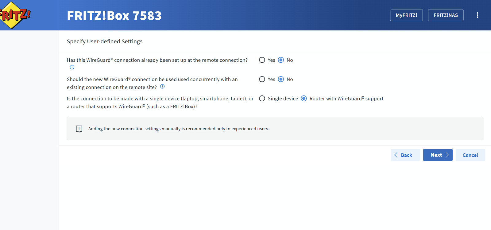 patousitsas Δημοσ. 1 Νοεμβρίου 2024 Δημοσ. 1 Νοεμβρίου 2024 Καλησπέρα, εχω ενα fritzbox 7583 στο σπιτι μου. Η συνδεση εχει public ip και θελω να ενεργοποιησω το wireguard. Το wireguard λειτουργει κανονικά οταν χρησιμοποιω την επιλογή για 1 συσκευή/κινητο/λαπτοπ κτλ. Αυτο που θελω ειναι να βαλω τις ρυθμίσεις του wireguard σε ενα GL.iNet GL-MT3000 (Beryl AX) ωστε οποια συσκευή συνδεθει στο Beryl να συνδεεται στο wireguard και επομενως να "βγαινει" στο ιντερνετ απο το Fritzbox. To Fritzbox εχει ip 192.168.178.1 ενώ το beryl εχει 192.168.8.1 Το Fritzbox ειναι το κυριο ρουτερ για το σπιτι ενώ το beryl "παιρνει" ιντερνετ απο αλλη συνδεση οπως πχ κινητο ή αλλο ρουτερ απο αλλο σπιτι. Οταν παω στο fritzbox να settαρω το wireguard εχει τις εξής ρυθμίσεις οπως στις εικόνες. Τι πρέπει να βαλω στο Remote network: και στο Subnet mask: ? τις IP του beryl ? αλλες ip? καπου εκει το χανω νομιζω. Οποιαδήποτε βοηθεια δεκτή ευχαριστώ πολύ.