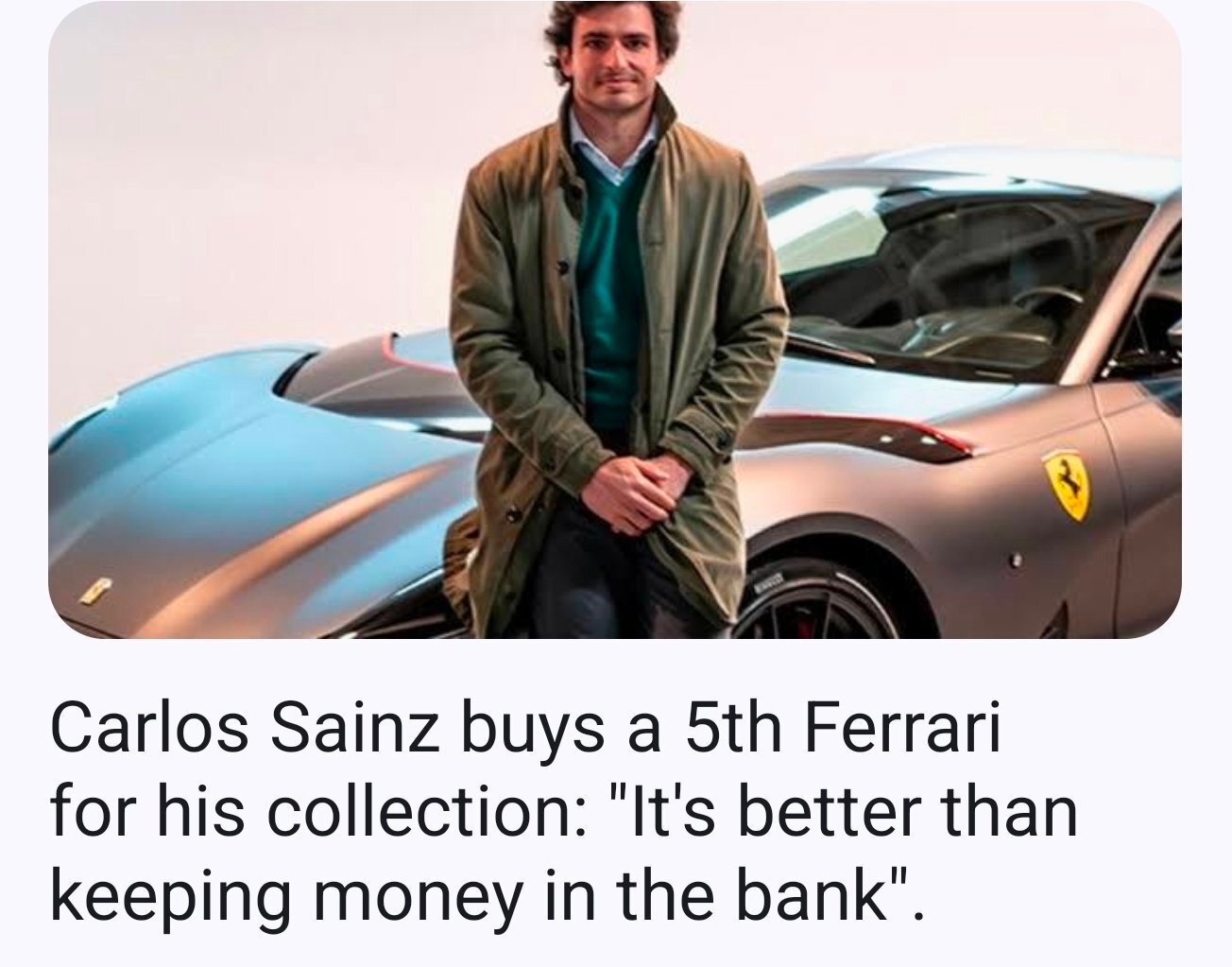 basilis_k6 Δημοσ. πριν από 10 ώρες Δημοσ. πριν από 10 ώρες 21 λεπτά πριν, sattack είπε Κατά βάθος όλοι ειναι οπαδοί της Ferrari. 😁 (και τι να πει? Καλύτερα ένα ψυγείο γεμάτο Red Bull? 😅 ) μια φερραρι απο μονη της παιρνει αξια ενω καθεται. μια φερραρι που ανηκει στον σαινθ παιρνει ΤΡΕΛΛΗ αξια ενω καθεται. Μπορει να τις πουλησει χ4 τιμη πριν αποσυρθει απο την φ1. πραφιτ 4