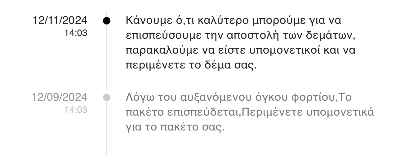 georgezerv76 Δημοσ. 17 Δεκεμβρίου 2024 Μέλος Δημοσ. 17 Δεκεμβρίου 2024 (επεξεργασμένο) Λοιπον εχω ευχαριστα και δυσαρεστα. τα ευχαριστα ειναι οτι μετα απο πολλα μνμτα σε μεσεντζερ ινταγκραμ και εφαρμογη, σημερα εμφανιστηκε στο σαιτ της acs η παραγγελια μου οτι ειναι αθηνα! Αρα το δεμα υπαρχει και θα το παρω! τα δυσαρεστα ειναι οτι ειχα κανει αλλες 2 παραγγελιες που μολις ειδα οτι θα σταλθουν με…speedex! 😧 αρα αυτες τις ξεχναω τουλαχιστον ως τον φλεβαρη… το καλο ειναι οτι θα το παλεψω να παρω refund και στις δυο… Επεξ/σία 17 Δεκεμβρίου 2024 από georgezerv76