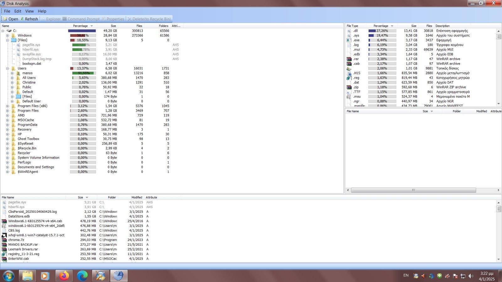 manos04 Δημοσ. 4 Ιανουαρίου Μέλος Δημοσ. 4 Ιανουαρίου (επεξεργασμένο) Τα είδα όλα αυτά που μου γράφεις, τα έχω σβήσει όλα μέχρι και σημεία επαναφοράς. Έκανα το check disk, πριν κάνει boot αλλά πάλι δεν φαίνεται να ελευθερώθηκε χώρος. SSD είναι ο δίσκος..Μήπως θα βοηθούσε κάποιο άλλο πρόγραμμα ειδικά για SSD; Για τον Ε με την αφαιρεση, όλα καλά. Σ ευχαριστώ ακόμη μια φορά micos000. Μήπως από την ανάλυση δίσκου μπορούμε να καταλάβουμε κάτι; Επεξ/σία 4 Ιανουαρίου από manos04