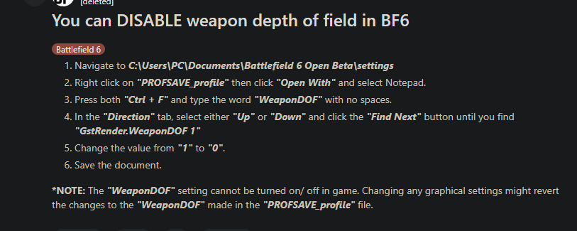 chrisgewrgi Δημοσ. πριν από 18 ώρες Δημοσ. πριν από 18 ώρες (επεξεργασμένο) 21 λεπτά πριν, Alex21121988 είπε Eγώ δεν δίνω τίποτα, αν δεν κάνω 40 λεπτά settings, key bindings και λίγο tweaking cause why not. xD Έπειτα, τουλάχιστον καμιά ώρα με bots. Έχω να πιάσω BF από το BF3... Βtw, αν σας ενοχλεί το dof στο weapon όταν είστε ads, και μέχρι να το δώσουν κανονικά στα settings, εδώ είστε. Cheers. Είναι από την Beta αυτό το post αλλά λειτουργεί κανονικά και στο final release. Απλώς ψάξτε το στα Documents, you can't miss it. Εγω εχω να παιξω bf απο το 4 Θα φάμε το ξύλο της αρκουδας😂 Επεξ/σία πριν από 18 ώρες από chrisgewrgi 1 2
