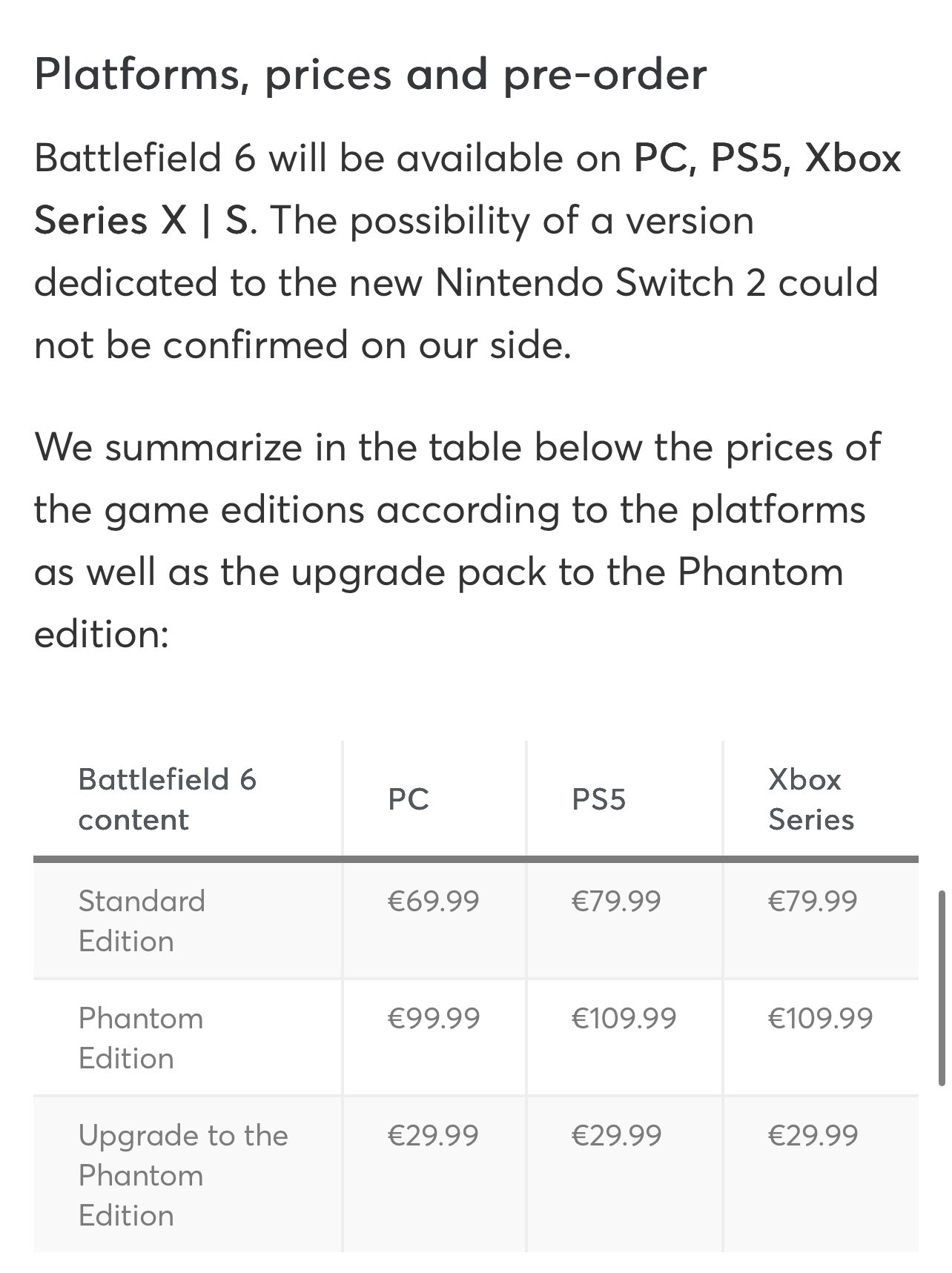 7nisiotis Δημοσ. 23 Ιουλίου Δημοσ. 23 Ιουλίου https://www.dealabs.com/magazine/battlefield-6-date-de-sortie-editions-prix-precommande-on-vous-devoile-toutes-nos-infos-inedites-60267 Contrary to some rumors, the Phantom Edition is not a Collector's Edition. It is rather a Deluxe Edition , exclusively digital, including additional in-game content. No early access will be granted : both editions will be available simultaneously on October 10, 2025