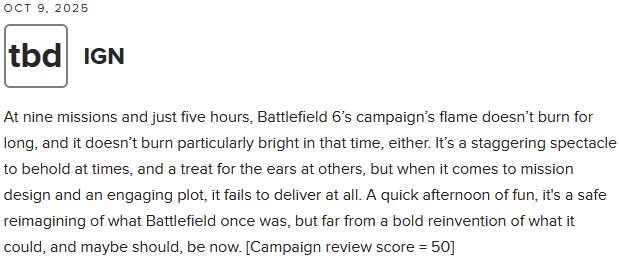 Psycho_Warhead Δημοσ. πριν από 24 λεπτά Μέλος Δημοσ. πριν από 24 λεπτά 81/100 https://www.metacritic.com/game/battlefield-6/critic-reviews/?platform=pc