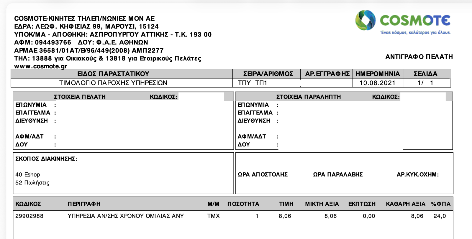 Όλοι οι υπόλοιποι τι απόδειξη λάβατε και πείτε μας εάν είχατε ΦΠΑ, διότι σύμφωνα με την Εθνική Επιτροπή Τηλεπικοινωνιών δεν υφίσταται να υπάρχει πώληση χωρίς ΦΠΑ