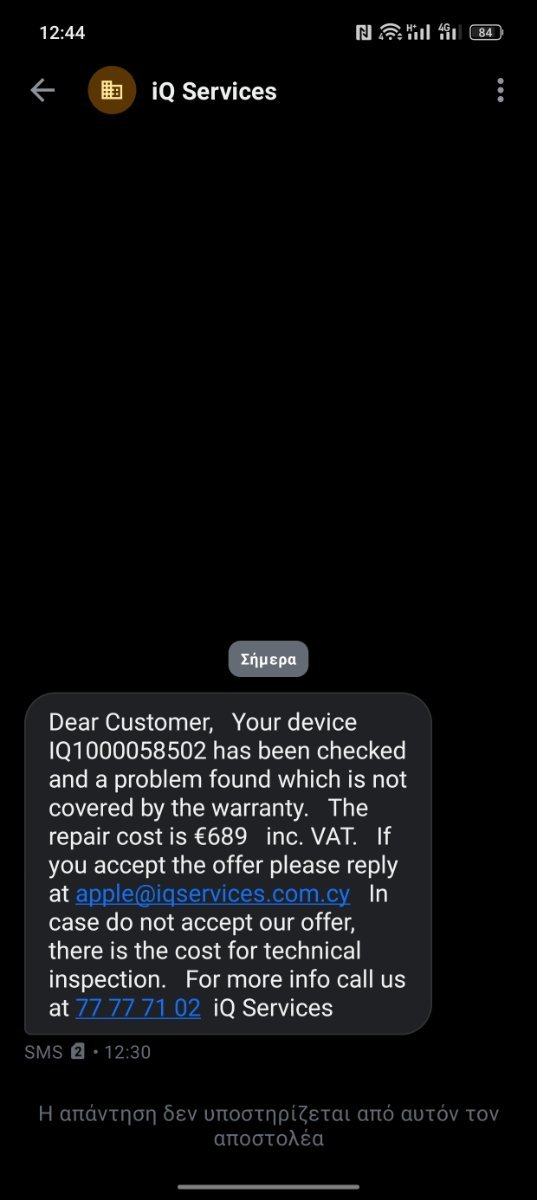 forgotten Δημοσ. 29 Απριλίου Δημοσ. 29 Απριλίου (επεξεργασμένο) Εχω αγορασει και πουλησει διαφορα εδω στο insomnia σημερα γραφω μια και την πατησα ως πρωταρης. και το insomnia μαλιστα δεν σβηνει καν την αρνητικη κριτικη του τυπου που μου εδωσε χαλασμενη συσκευη. O τυπος μαλιστα εφυγε και απο το insomnia πλεον Το ιστορικο Ανταλλαξα με ατομο απο εδω συσκευη σφραγισμενη , και ελαβα απο εκεινον ενα iphone 15, παρουσιαζε προβλημα με την μπαταρια στο ενα της εκατο και εκανε επανεκινηση , το στειλα στο authorised service point και μου ειπαν οτι μαλλον θελει αλλαγη η μπαταρια του κινητου, σημερα με πηραν τηλεφωνο και με ενημερωσαν οτι το προβλημα ειναι στη μητρικη και οτι το κινητο ανοικτηκε παλαιοτερα και αλλαχθηκε η μπαταρια δημιουργοντας προβλημα ζητωντας μαλιστα 689 ευρω. Δεν φτανει αυτο αλλα απαντησε στην αρνητικη μου με αρνητικη απο μερους του. Αυτη τη στιγμη εχω δωσει συσκευη αξιας 580 ευρω και ελαβα συσκευη αξιας 0 ευρω και με κοστος απο μερους μου και στο service center. Το μονο που εχω να πω ειναι προσοχη στις συναλλαγες σας να στε επιμηθεις και οχι προμηθεις. Για μενα οι ανταλλαγες απο αποσταση μια και ειμαι κυπρο αποδεικτηκαν εξαιρετικα ζημιογονες . Επισυναπτω και για την αποδειξη των λεγομενων μου το κοστος απο το authorised center. Επεξ/σία 29 Απριλίου από forgotten