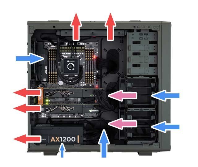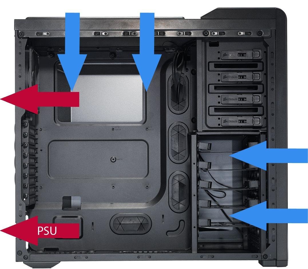 Τους πάνω ανεμιστήρες του έχω εξαγωγής. Δυο μπροστινούς εισαγωγής, δύο κάτω εισαγωγής, δύο πάνω εξαγωγής κι έναν πίσω εξαγωγής. Οι δύο πάνω πρέπει να είναι ειαγωγής, να τους αλλάξω;