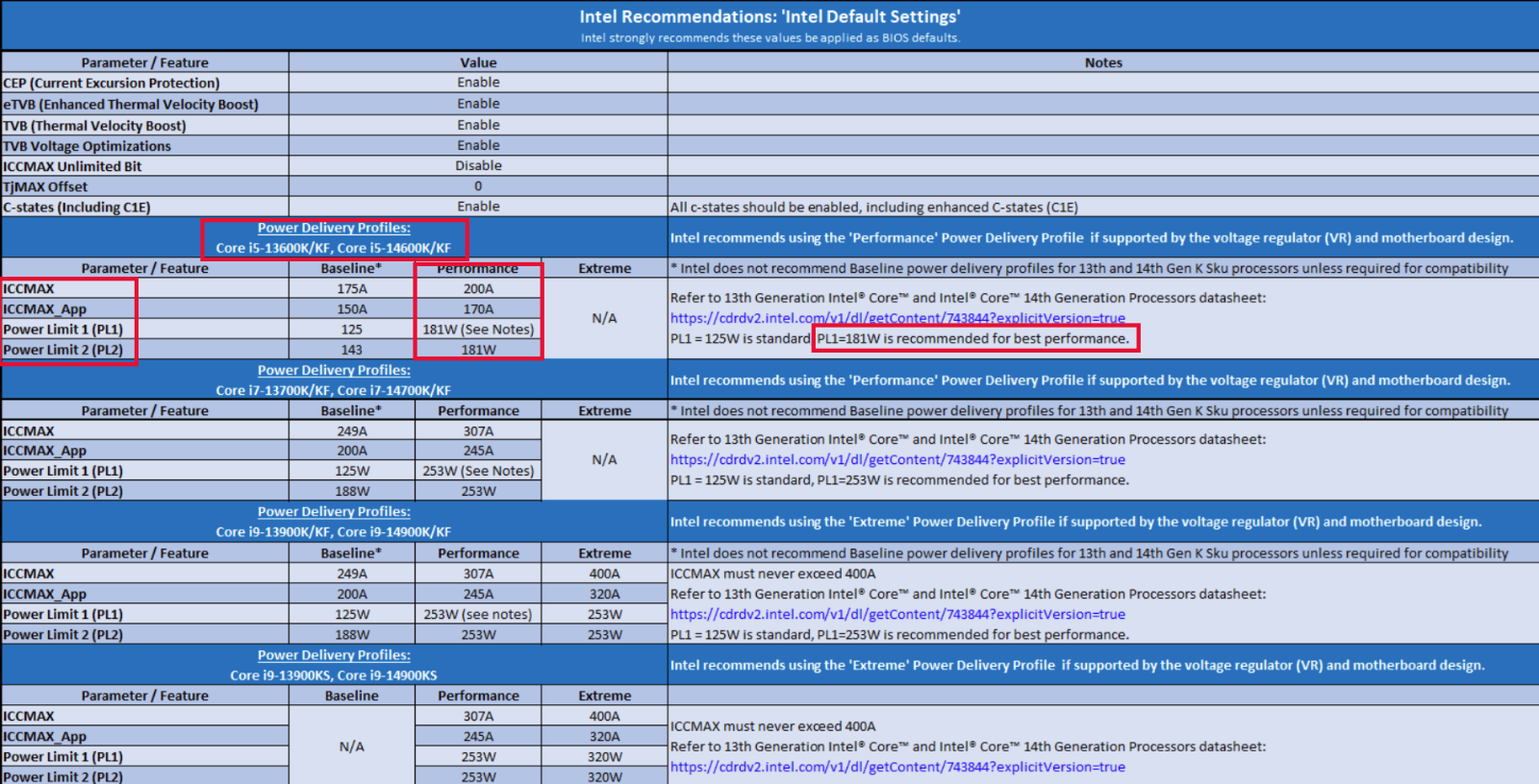 sakisgri Δημοσ. 21 Μαϊου Δημοσ. 21 Μαϊου (επεξεργασμένο) 1 ώρα πριν, divan είπε Έκανα τιςρυθμίσεις PL1 και LP2 181W και το άλλο 200A και η ανώτερη θερμοκρασία από 94 έπεσε στους 84 σε απαιτητικό παιχνίδι με ΜΟ θερμοκρασία 78-79 βαθμούς, αλλά ο μεγάλος μου γιος ισχυρίζεται ότι τα PL1 και LP2 καθορίζουν το ανώτερο όριο των W κι αν ο επεξεργαστής χρειαστεί περισσότερα θα κρασάρει. Ισχύει αυτό; Αυτός διάβασε σε σαιτ της MSI ότι το PL1 και LP2 πρέπει να είναι στα 253 και τα αμπερ 307 αλλά με αυτές τις τιμές η ανώτερη ήταν 94 και ο ΜΟ περίπου στους 88 με 89 βαθμούς. Αυτά τα νούμερα που σου έδωσα δεν είναι τυχαία, είναι τα recommended for best performance της Intel. Δεν χρειάζεται να είναι παραπάνω. Το 253 PL1 & PL2 και τα 307A ισχύει, αλλά όχι για το δικό σου cpu, είναι για τον i7 και τον i9 (δες φώτο κάτω) Όπως έγραψα, υπήρχε θέμα, και μπορεί να διορθώθηκε με BIOS update, θα κάνω copy paste πιο κάτω μεταφρασμένο τι συμβαίνει από εδώ https://community.intel.com/t5/Mobile-and-Desktop-Processors/June-2024-Guidance-regarding-Intel-Core-13th-and-14th-Gen-K-KF/m-p/1607807 Μονο αν θες απάντησε σε 2 ερωτήσεις, (1) έκανες update στο τελευταίο BIOS ?. (2) Έλεγξες αν η ψυκτρα είναι τοποθετημένη σωστά και αν έχει βγει η ζελατίνα? (Προσωπικά πιστεύω έχει γίνει σωστή τοποθέτηση και έχει βγει η ζελατίνα, αλλιώς θα είχες υψηλές θερμοκρασίες και όταν είναι idle) Αν οι απο πάνω ερωτήσεις είναι ναι και ναι, τότε θα συνιστούσα να κατεβάσεις και το "CPU lite load" και να βάλεις τα "IA CEP Support" και "IA CEP Support For 14th" σε disable, όπως έγραψα στην πίσω σελίδα. Mε αυτόν τον τρόπο κάνεις underclocking, θα έχεις την ίδια απόδοση με λιγότερο ρεύμα, που σημαίνει χαμηλότερη θερμοκρασία και καλύτερες επιδόσεις, όσο περίεργο μπορεί να ακούγεται! απλώς μη το παρακάνεις. Μετάφραση από το link πάνω: Η Intel και οι συνεργάτες της συνεχίζουν να διερευνούν αναφορές χρηστών σχετικά με προβλήματα αστάθειας στους επιτραπέζιους επεξεργαστές Intel Core 13ης και 14ης γενιάς (K/KF/KS). Εκτιμούμε την υπομονή της κοινότητας της Intel στο θέμα και θα συνεχίσουμε να κοινοποιούμε ενημερώσεις σχετικά με την έρευνα καθώς αυτή εργάζεται προς την εξαγωγή συμπερασμάτων. Εν τω μεταξύ, κοινοποιούμε μια ενημέρωση σχετικά με τους επιβεβαιωμένους παράγοντες που οδήγησαν στα αναφερόμενα προβλήματα αστάθειας και τις τρέχουσες οδηγίες της Intel προς τους χρήστες σχετικά με τους επιτραπέζιους επεξεργαστές Intel Core 13ης και 14ης γενιάς (K/KF/KS). Ιστορικό της έρευνας και συστάσεις για τις προεπιλεγμένες ρυθμίσεις της Intel Η ανάλυση της Intel έχει προσδιορίσει έναν επιβεβαιωμένο παράγοντα που συμβάλλει στις αναφορές αστάθειας στους επιτραπέζιους επεξεργαστές Intel Core 13ης και 14ης γενιάς (K/KF/KS) είναι η αυξημένη τάση εισόδου στον επεξεργαστή λόγω προηγούμενων ρυθμίσεων του BIOS, οι οποίες επιτρέπουν στον επεξεργαστή να λειτουργεί σε συχνότητες και τάσεις turbo, ακόμη και όταν ο επεξεργαστής βρίσκεται σε υψηλή θερμοκρασία. Ωστόσο, κατά την διερεύνηση αυτού του προβλήματος αστάθειας, η Intel ανακάλυψε ένα σφάλμα στον αλγόριθμο Enhanced Thermal Velocity Boost (eTVB), το οποίο μπορεί να επηρεάσει τις συνθήκες λειτουργίας των επεξεργαστών Intel Core 13ης και 14ης γενιάς (K/KF/KS). Έχουμε αναπτύξει μια ενημέρωση κώδικα για το σφάλμα eTVB και συνεργαζόμαστε με τους συνεργάτες μας στις μητρικές πλακέτες OEM/ODM για την κυκλοφορία της ενημέρωσης ως μέρος των ενημερώσεων του BIOS πριν από τις 19 Ιουλίου 2024. Ενώ αυτό το σφάλμα eTVB ενδεχομένως συμβάλλει στην αστάθεια, δεν είναι η βασική αιτία του προβλήματος αστάθειας. Καθώς η Intel και οι συνεργάτες της συνεχίζουν να εργάζονται