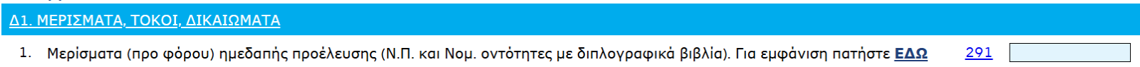 georgiouu Δημοσ. 12 Ιουνίου Δημοσ. 12 Ιουνίου (επεξεργασμένο) πατωντας στο ΕΔΩ μου εμφανιζει μερισμα που εχω λαβει.Πατωντας ομως δεξια στο σιελ αδειο τετραγωνακι 291 θα επρεπε να με οδηγησει σε πινακα απο τον οποιο θα μπορουσα να εισαγω αυτοματα το μερισμα στην φορολογικη δηλωση.Δεν γινεται ομως αυτο αλλα με οδηγει σε πινακα που πρεπει να εισαγω χειροκινητα ΑΦΜ Ν Προσωπου,δεν ξερω τι ειναι αυτο.γνωριζει κανεις; 7 λεπτά πριν, georgiouu είπε πατωντας στο ΕΔΩ μου εμφανιζει μερισμα που εχω λαβει.Πατωντας ομως δεξια στο σιελ αδειο τετραγωνακι 291 θα επρεπε να με οδηγησει σε πινακα απο τον οποιο θα μπορουσα να εισαγω αυτοματα το μερισμα στην φορολογικη δηλωση.Δεν γινεται ομως αυτο αλλα με οδηγει σε πινακα που πρεπει να εισαγω χειροκινητα ΑΦΜ Ν Προσωπου,δεν ξερω τι ειναι αυτο.γνωριζει κανεις; το οποιο μερισμα εχει φορολογηθει ηδη μηπως δεν πρεπει να το συμπληρωσω καν; Επεξ/σία 12 Ιουνίου από georgiouu