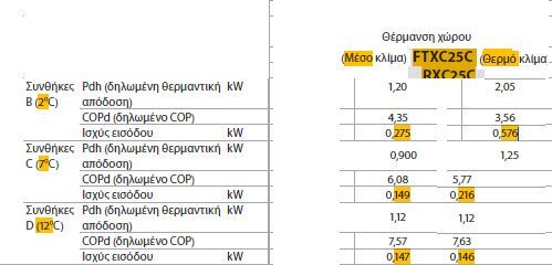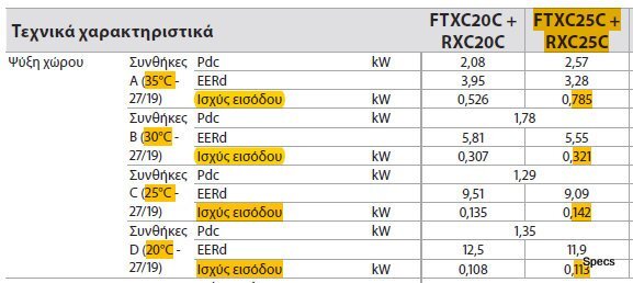 Specs Δημοσ. 26 Αυγούστου 2024 Δημοσ. 26 Αυγούστου 2024 (επεξεργασμένο) 7 hours ago, popopo said: Με παραξενεύει το ότι στο δικό μου atxc25c Η Daikin λεει πως στις πιο ευνοικες συνθηκες των τεστ της, δηλαδη σε ψυξη στους 20 βαθμους εξω θα δεις 113w και στους 25 εξω 142w κλπ οπως βλεπεις στο βιβλιο της. Μη περιμενεις κ χωρις on-off σε αυτα τα ορια, ειδικα αν ειναι μικρες οι απαιτησει κ το δωματιο. Σε πιο μεγαλους χωρους λιγοτερα on-off φυσικα. Την ιδια στιγμη, παρατηρω οτι για θερμανση, ΣΤΟ ΒΙΒΛΙΟ, ΑΝΤΙΘΕΤΑ ΑΠΟ ΤΟ ΕΝΕΡΓΕΙΑΚΟ ΤΑΜΠΕΛΑΚΙ, εχει διαφορα στα ελαχιστα watt , μεταξυ θερμου κ μεσαιου κλιματος. Εχει δηλαδη αυτο που συζηταμε καιρο τωρα, μεγαλυτερη δηλωμενη ισχυ στο θερμο, αρα κ ρισκο για μεγαλυτερη την ελαχιστη καταναλωση. Οπως φαινεται στον "φωτοσοπαρισμενο" πινακα κ ας μην θυμαμαι να εχω καταλαβει ποτε ειναι η μια συμπεριφορα κ ποτε η αλλη, (μαλλον οι αναγκες του χωρου το καθοριζουν?) στους 2 βαθμους εξωτερικη με Μεσο κλιμα, δηλωνει πως θα παρεις 1,2kw(δηλαδη 4100 btu) με βαθμο αποδοσης 4,35 κ καταναλωση 275w ενω σε Θερμο κλιμα , δηλωνει πως θα παρεις 2,05kw(δηλαδη 7000 btu) με μειωμενο βαθμο αποδοσης 3,56 που μαλλον προκυπτει απο την ελαχιστη καταναλωση σε διπλασια+ 576w Στους 7 βαθμους παλι εχουμε αντιστοιχα διαφορες αν κ μικροτερες μεταξυ Μεσαιου κ Θερμου κλιματος. Στους 12 βαθμους οι διαφορες μηδενιζονται... ΥΓ για την ιστορια, το Perfera με ταμπελακι παλι "καλο", δηλαδη με μειωμενη κ οχι αυξημενη ισχυ στο Θερμο κλιμα, εχει στο βιβλιο του ιδια κ τα δυο κλιματα. Τι φαση...καμμια εξηγηση κανεις εχει για να το κανουμε ακομη πιο χαωδες εμπλεκοντας και το Tbiv (δισθενής θερμοκρασία)??? Ε μα...🤢 Επεξ/σία 26 Αυγούστου 2024 από Specs 1
