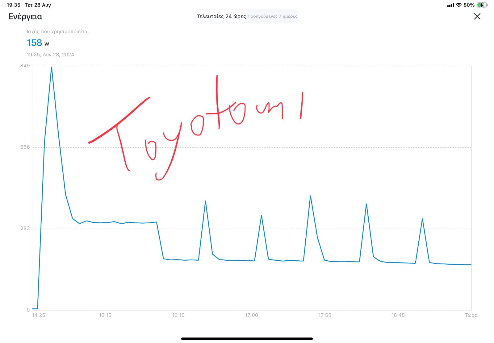 Klausx Δημοσ. 28 Αυγούστου 2024 Δημοσ. 28 Αυγούστου 2024 Μετά από 4 καλοκαίρια με σχεδόν 24ωρη λειτουργία το Midea prime δείχνει σημάδια κούρασης... κυρίως στον Ανεμιστήρα ανεβάζοντας την κατανάλωση κατά πολύ. 450267033_7573822329394334_6709861326283997328_n.mp4 Σύντομα θα γίνει αντικατάσταση με https://www.fujitsu-general.com/gr/products/split/wall/aseh09kmcg.html