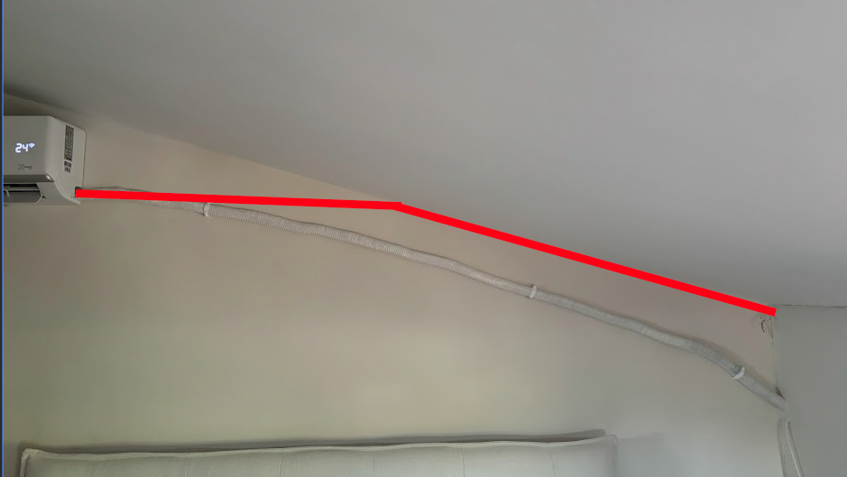 harrymylo Δημοσ. 29 Αυγούστου 2024 Δημοσ. 29 Αυγούστου 2024 Καλησπέρα σε όλους. Θα ήθελα μια δεύτερη άποψη για μια εγκατάσταση κλιματιστικού αν υπάρχει κάποιος με περισότερη εμπειρία. Αγόρασα ενα Midea απο Plaisio με δωρεάν εγκατάσταση που έγινε απο συνεργείο που συνεργάζονται. Το δωμάτιο είναι αρκετά δύσκολο κ έπρεπε να γίνει εγκατάσταση της εξωτερικής μονάδας στα κεραμίδια. Όλα καλά κ λειτουργικά αλλά πιστεύω οτι δεν υπήρχε κανένας λόγος να γίνει τόσο "άσχημη" εγκατάσταση. Τους το υπέδειξα κ μου είπαν οτι χρειάζεται συνεχής κλίση για να μήν υπάρξει αντίστροφη ροή του νερού. Καταλαβαίνω οτι πρέπει να υπάρχει κλίση αλλά πιστεύω οτι θα μπορούσε άνετα να μπεί όπως έχω σημειώσει με κόκκινο στην άλλη φωτογραφία. Έχω άδικο;