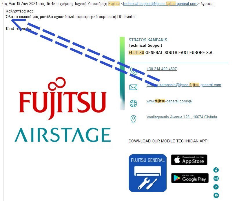 liakjim Δημοσ. 14 Σεπτεμβρίου 2024 Δημοσ. 14 Σεπτεμβρίου 2024 Μόλις τώρα, Specs είπε ΟΛΑ τα οικιακα μοντελα της Fujitsu εχουν Twin Rotary...απολαυστε αφοβα, το γιατι δεν κατεβαινουν καποια σε χαμηλα watt, ειναι θεμα προγραμματισμου μαλλον. Δεν νομίζω πχ στα KMTA έχουν από τα 18Κ btus και άνω. (σωστά; ) 1