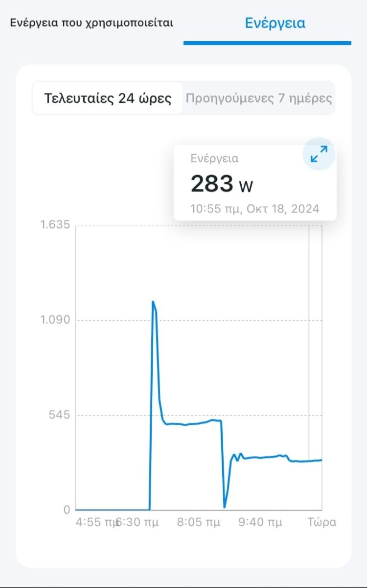 GiannisSol Δημοσ. 19 Οκτωβρίου 2024 Δημοσ. 19 Οκτωβρίου 2024 53 λεπτά πριν, dimostr είπε Θα τα αφήσω αλλα δε πρόκειται να αλλάξει κάτι το Toyotomi είναι λόγω test mode σε κλειδωμένα watt το daikin θα κάνει κάνα περιοδικό αναμα κάποια στιγμή στα 190 watt αλλα θα σβήσει αμέσως μιας και απέναντι το toyotomi το καλύπτει και το Shorai κλασικά θα δουλευει εκεί στα 125-160 watt μέχρι να το σβήσω και για του λόγου το αληθές σχεδόν μετά από μια ωρα και η εξωτερική είναι τώρα στο σταθμό που είναι δίπλα στο σπίτι μου 14,7 από 15,5 όταν τα άναψα Άρα τη καλύτερη συμπεριφορά την έχει το Toshiba. Σε μια δοκιμή που κάναμε σε φίλο με edge 13αρι είναι το παρακάτω γράφημα