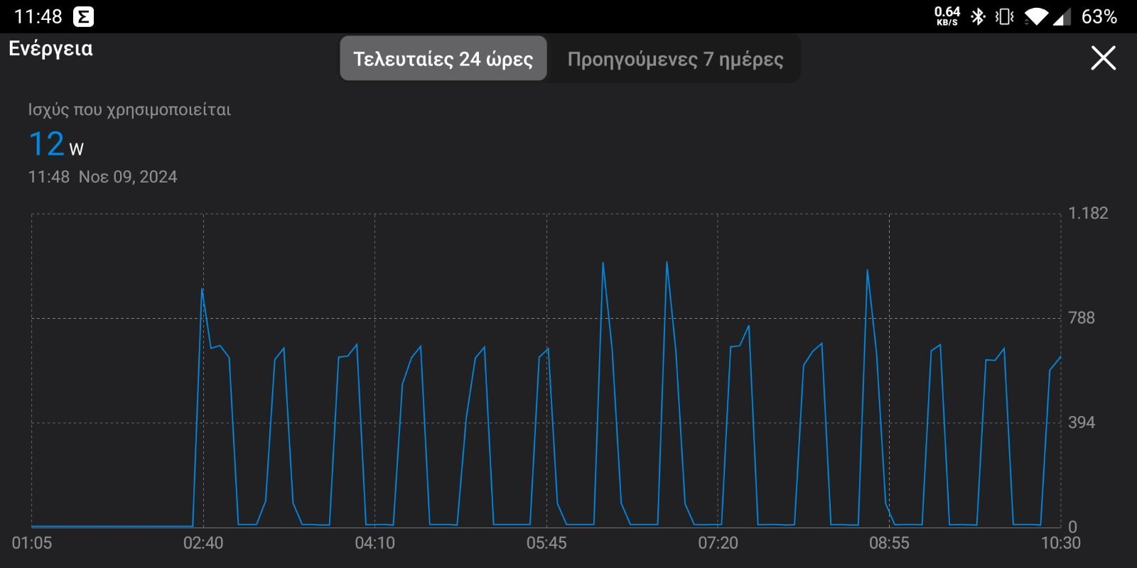 BrunoB Δημοσ. 9 Νοεμβρίου 2024 Δημοσ. 9 Νοεμβρίου 2024 (επεξεργασμένο) 16 hours ago, liakjim said: Διάγραμμα κατανάλωσης ενός asyg18kmte σε θέρμανση (από φίλο, όχι δικό μου) Τι προκαλεί αυτά τα mini-spikes @liakjim ? Επεξ/σία 9 Νοεμβρίου 2024 από BrunoB