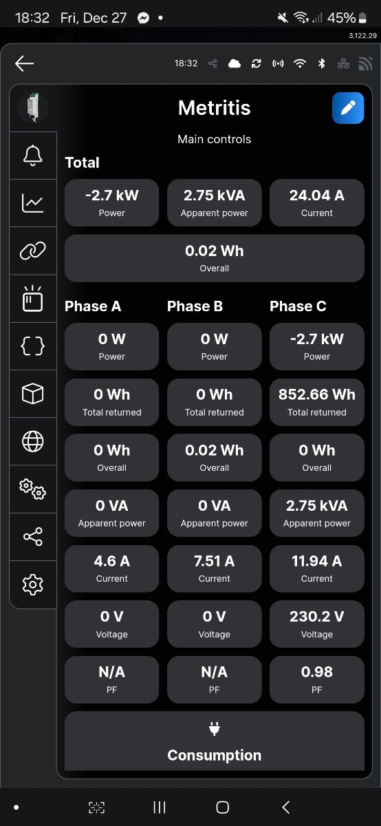 mdkamael Δημοσ. 27 Δεκεμβρίου 2024 Δημοσ. 27 Δεκεμβρίου 2024 24 λεπτά πριν, liakjim είπε Μάλλον έχεις το clamp ανάποδα και για αυτό έχεις αρνητικό πρόσημο. Επίσης ναι, έστω και σαν VM , ένα homeassistant είναι απαραίτητο. Αν δεν επηρεαζει κατι ουσιαστικα στην καταμετρηση τοτε οκ...δεν χαλασε ο κοσμος... Χμμμ ... VM, ε?! Not bad...
