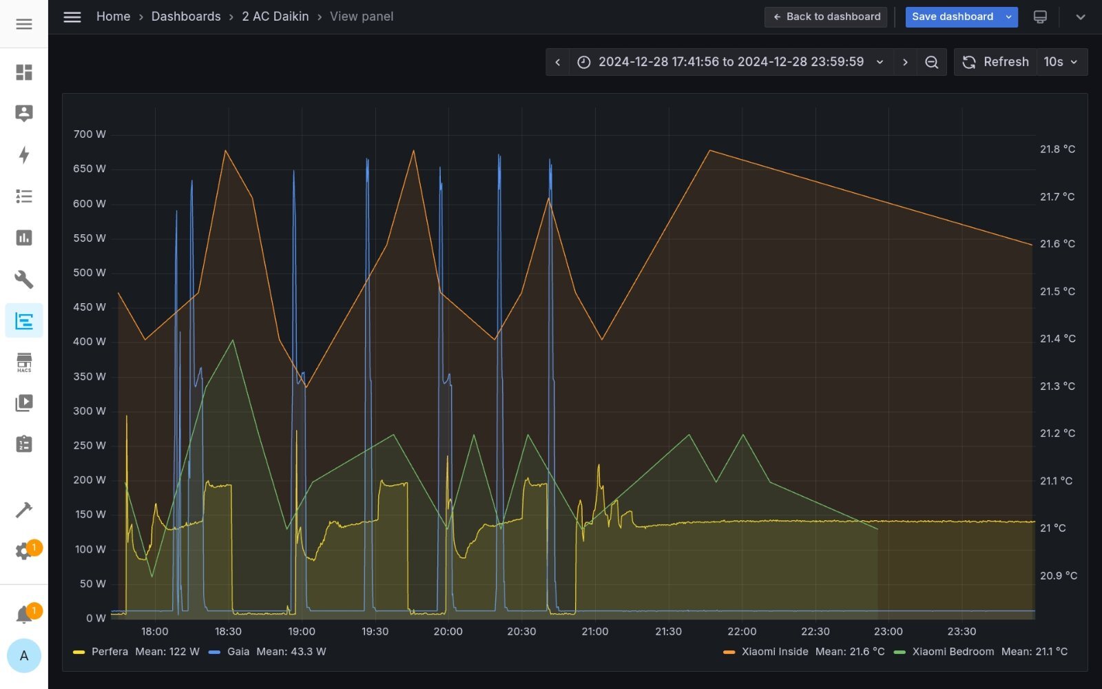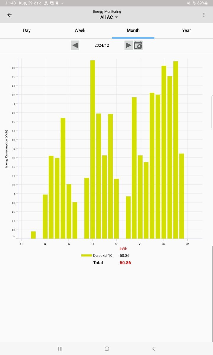 alexdeskas Δημοσ. 29 Δεκεμβρίου 2024 Δημοσ. 29 Δεκεμβρίου 2024 (επεξεργασμένο) Καλημέρα σας. Βάζω κάποια διαγράμματα και ο καθένας ας βγάλει τα συμπεράσματά του. Ας γράψω όμως κι εγώ κάποια δικά μου συμπεράσματα... Πολύ σημαντικός ο προσανατολισμός του σπιτιού στη θέρμανση. Τα ηλιακά κέρδη του μεσημεριού πολύ σημαντικά όπως βλεπουμε στη δεύτερη φωτό. Αν μάλιστα είχα λίγο μικρότερη ζήτηση δηλαδή 21 και όχι 21.5 τότε από τις 11 το πρωί έως τις 7 το απόγευμα τα κλιματιστικά μου θα ήταν σε stand by συνεχώς. Ένα άλλο συμπέρασμα που βγάζω είναι ότι ένα "κακό" κλιματιστικό μπορεί να παρασύρει και ένα "καλό" στον τρόπο λειτουργίας του. Φωτό 4. Εδώ το Midea Gaia παρασέρνει το Daikin Perfera σε σχετικά on-off και όταν στις 21:00 κατεβάζω ζήτηση στο Midea ώστε να μην λειτουργεί φαίνεται ο σωστός τρόπος λειτουργίας του Perfera ο οποίος συνεχίζεται τουλάχιστον για 12 ώρες και μάλιστα με εξωτερική 4 βαθμούς προς το πρωί. Συμπέρασμα... καλύτερα θα ήταν να έχω ίδια κλιματιστικα σε όλους τους χώρους ώστε να λειτουργούν με τον ίδιο τρόπο. Το Perfera μόνο του κρατάει όλο το σπίτι όπως φαίνεται και στη φωτό 2 από τις 21:00 και μετά, όπως έκανε και όλο τον περσινό χειμώνα και μάλιστα με αστείες καταναλώσεις. Στη φωτό 1 έχει αλλαχτεί το κλιματιστικό του υπνοδωματίου τον Αύγουστο του 24. Στη θέση του είναι το Midea Gaia 9. Το καλοκαίρι ήταν άψογο στην ψύξη αλλά για θέρμανση δεν ... Αυτά από μένα . Τα υπόλοιπα δικά σας... Επεξ/σία 29 Δεκεμβρίου 2024 από alexdeskas 2 1