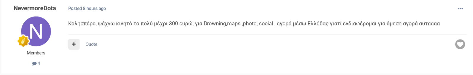 NevermoreDota Δημοσ. 3 Ιουλίου Δημοσ. 3 Ιουλίου Καλησπέρα, ψάχνω κινητό το πολύ μέχρι 300 ευρώ, για Browning,maps ,photo, social , αγορά μέσω Ελλάδας γιατί ενδιαφέρομαι για άμεση αγορά αυταααα