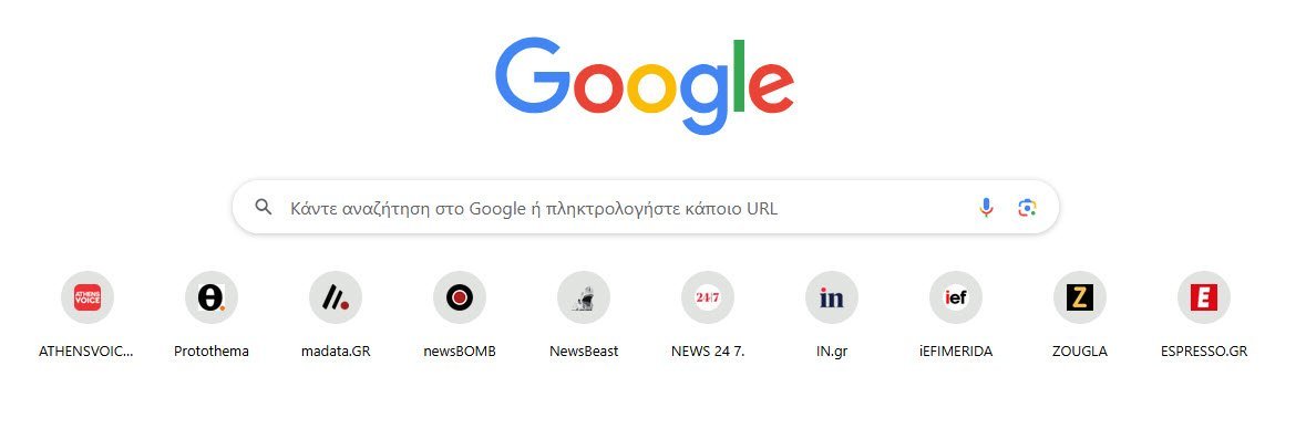 alxandros_gr Δημοσ. 7 Ιουλίου Δημοσ. 7 Ιουλίου 1 hour ago, vounisios said: Γεια σας φιλοι μου....Στο Google εχω μεχρι τωρα αυτες τις 10 ηλεκτρονικες εφημεριδες για να παρακολουθω τα νεα...Θελω ομως να προσθεσω και μερικες ακομη. Υπαρχει τροπος? αν ναι, πως μπορω να το κανω?[ Αν γινεται να βαλω και μια 2η σειρα απο κατω]. Σας ευχαριστω! Οι συντομεύσεις αυτές δεν είναι στο google αλλά στον browser. Στον brave που χρησιμοποιώ με αφήνει για 12 συντομεύσεις και για παραπάνω τις εμφανίζει σε 2η σελίδα. Επειδή λογικά χρησιμοποιείς τον Chrome, ένα γρήγορο search δείχνει οτι πρέπει να βάλεις κάποιο extension για να μπορείς να έχεις περισσότερα. Άλλη λύση χωρίς extension στον browser είναι να βάλεις τα sites που θέλεις σε bookmarks που δεν έχει περιορισμό 1