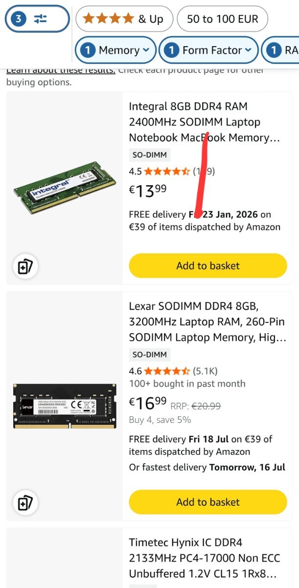 schumi46 Δημοσ. 15 Ιουλίου Μέλος Δημοσ. 15 Ιουλίου 14 λεπτά πριν, sattack είπε Έχει στο amazon.de με 14Ε για 2400 και με 17Ε για 3200! Λινκ για την 2400 https://www.amazon.de/-/en/Integral-2400MHz-SODIMM-Notebook-MacBook/dp/B07GMB9NY6/ref=mp_s_a_1_1?crid=2Z2JL1SG6YNVR&dib=eyJ2IjoiMSJ9.IrqvZYgQMpfTkPkpQprs9NTdXIXzPDN3P2aUr4Q6Gi6UtJez0vKd8tECwSH--Vxck4e7jFxs6gAvLB_WNUgYyvOt74ptajCnpbawq0FKCbM4d4HK5fAFKMBwuypMhJVNo_YgUEdbQeWK79bvWHBswH92QptS80atJDfZ4CpwVTrRc1ZakLTIAAOZBnT47yKGMWQxRe6oipC_Czzf-MpG2w.1kqepyizuUw_fyzoQY00KA8_IzVfbRg1-z6ThWMoCfc&dib_tag=se&keywords=sodimm+ddr4+8gb&qid=1752562426&refinements=p_n_feature_eight_browse-bin%3A411634031%2Cp_n_feature_three_browse-bin%3A30127466031%2Cp_n_style_browse-bin%3A11416703031&rnid=367343011&sprefix=sodimm+ddr4+8gb%2Caps%2C162&sr=8-1 Λινκ για την 3200 https://www.amazon.de/-/en/Lexar-3200MHz-Performance-Computer-LD4AS008G-B3200ASST/dp/B0C7Z4HJ8L/ref=mp_s_a_1_2?crid=2Z2JL1SG6YNVR&dib=eyJ2IjoiMSJ9.IrqvZYgQMpfTkPkpQprs9NTdXIXzPDN3P2aUr4Q6Gi6UtJez0vKd8tECwSH--Vxck4e7jFxs6gAvLB_WNUgYyvOt74ptajCnpbawq0FKCbM4d4HK5fAFKMBwuypMhJVNo_YgUEdbQeWK79bvWHBswH92QptS80atJDfZ4CpwVTrRc1ZakLTIAAOZBnT47yKGMWQxRe6oipC_Czzf-MpG2w.1kqepyizuUw_fyzoQY00KA8_IzVfbRg1-z6ThWMoCfc&dib_tag=se&keywords=sodimm+ddr4+8gb&qid=1752562426&refinements=p_n_feature_eight_browse-bin%3A411634031%2Cp_n_feature_three_browse-bin%3A30127466031%2Cp_n_style_browse-bin%3A11416703031&rnid=367343011&sprefix=sodimm+ddr4+8gb%2Caps%2C162&sr=8-2 ok τη lexar την εχω με 19€ στη πορτα μου. την παραγγελνω τωρα! και με δωρεαν επιστροφη αν δεν κανει. εσπασα το φραγμα των 20€ απιστευτο με τους βλκες εδω 7 λεπτά πριν, sattack είπε !!!! Μαλιστα εγω είμαι Βέλγιο, και μου βγάζει τόσο πιο φτηνες τιμες απο amazon Γερμανίας! Τι να πω.... μπορεις να μου πεις οσον αφορα στον ssd αν αυτος κουμπωνει? η διαφορα PCIe Premium και MI500 με αφορα ή κλαιν? ο δικος μου ειναι αυτος της τοσιμπα. https://www.amazon.de/Intenso-3835440-Premium-Express-Gen-3x4/dp/B09F4CT8LV/ref=sr_1_3?crid=3A9Z2QM920Z6Q&dib=eyJ2IjoiMSJ9.SC5WFbqB7shVFv_8HIARIDbwYilFcdfYaY6Qv_6k37DSRl3mM2kqemGt67x9ObZQlSai-X05z9V7-QENYQttcGmI52BiiKAGsXddAiPnGKvmU6gEdTRsebvjWUWcK4S5mlaC_v_yxLi6ajs6mWCr_jOzmO0QPlzc-41ww0N3TVx1aRFq-YJoC5tQj6C6oQC3l8YsmFgbMmc2PEEMrkY9rCFetbyVBed3VDIDhehN6S4.opO15ZpNcn3phaWT4rDb-dMRxF9ooL1uXJFlbeQtEDw&dib_tag=se&keywords=intenso%2B250gb%2Bm.2%2Bssd&qid=1752563772&refinements=p_n_feature_eighteen_browse-bin%3A14090299031%2Cp_n_condition-type%3A776949031&rnid=776942031&sprefix=intenso%2Bssd%2B250%2Caps%2C166&sr=8-3&th=1 1