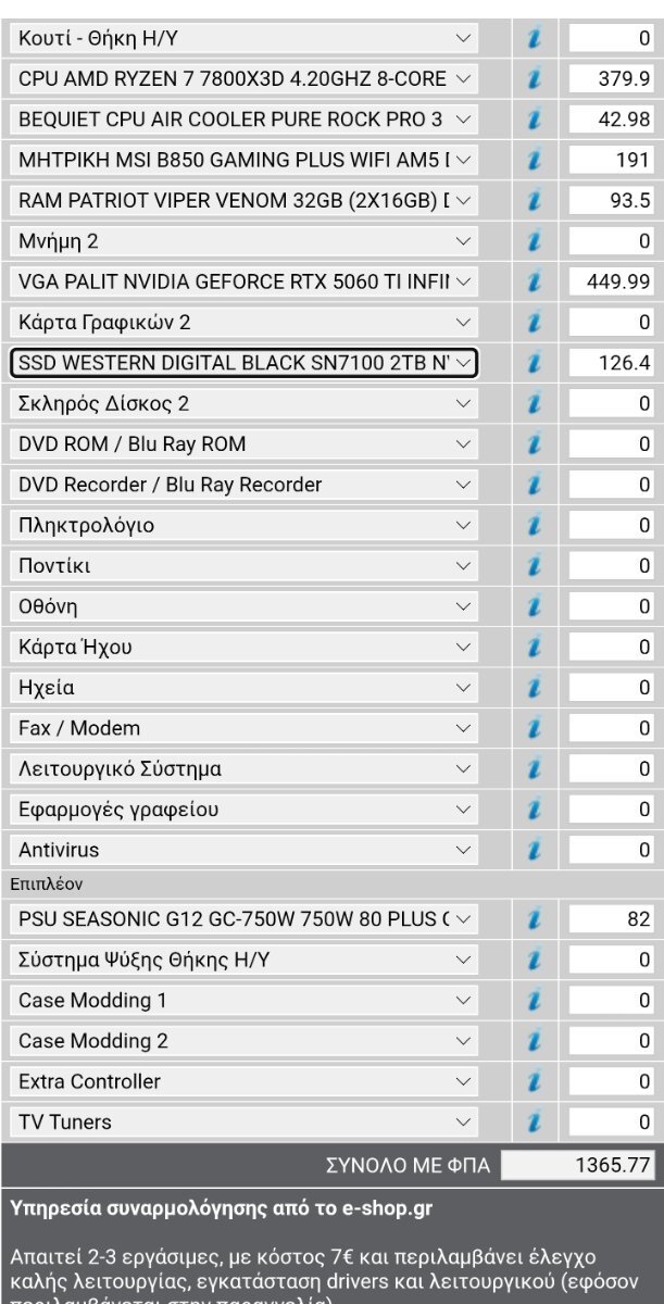 sattack Δημοσ. 19 Ιουλίου Δημοσ. 19 Ιουλίου (επεξεργασμένο) Επειδή πάνω κάτω έχουμε κάποια φαβορί που προτιμούμε, εύκολα βγαίνει μια σύνθεση. Απο eshop λοιπόν που προτιμάς λόγω ευκολίας: - cpu 7800X3D - ψύκτρα Be Quiet Pure Rock Pro 3 Dual Fan - μητρική MSI Β850 Gaming Plus WiFi - ram DDR5 32GB 6000 cl30 Patriot - gpu 5060Ti 16Gb - NVMe 2TB WD black 7100 - PSU Seasonic Gold 750W - κουτί ότι σου αρέσει. Βγαίνει 1366Ε (+7 συναρμολόγηση) χωρίς κουτί, για να βάλεις όποιο κουτί σου αρέσει. Θα έχεις σούπερ τοπ πλατφόρμα ΑΜ5 (Ούτε για αστείο intel...) Kαι για κάρτα, η 5060 Ti 16GB είναι ότι πρέπει τώρα για 1080p που έχεις. Θα είναι λάθος να προσπαθήσεις να κόψεις από τα άλλα συστήματα για να πας σε καλυτερη κάρτα για όταν μετά από χρόνια ίσως πάρεις 1440p οθόνη. (Και σε ποια κάρτα πιο πάνω θα πήγαινες? Στην 5070 12GB? Άσε καλύτερα....). Όταν αλλάξεις οθόνη, θα πάρεις τότε καλύτερη κάρτα, που θα έχουν βγει νέα καλύτερα μοντέλα. Το υπόλοιπο pc όμως θα μείνει ως έχει, και θα είναι τοπ. Και η 5060 Ti 16GB αν χρειαστεί τότε να πουληθεί, θα είναι ακόμα αξιόλογη λόγω των 16GB, θα βρεις να την πουλήσεις πανεύκολα. Win11pro και Office365 θα τα εγκαταστήσεις μόνος σου με δωρεάν ενεργοποίηση με το Github Activation script που έχουμε γράψει πολλές φορές. Επεξ/σία 20 Ιουλίου από sattack 2