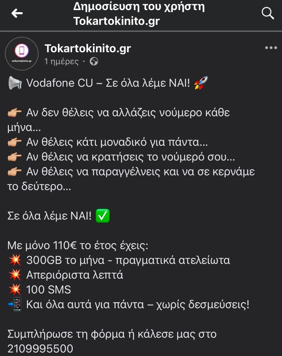 Panoskoopa Δημοσ. Τετάρτη στις 12:12 μμ Δημοσ. Τετάρτη στις 12:12 μμ 14 λεπτά πριν, darkmatinee είπε Απάτη δεν είναι, η προσφορά της Nova στα 99€ τρέχει τόσους μήνες και όλοι έχουμε πάρει αυτά που υπόσχονται. Από τον συγκεκριμένο λέω μιας και είναι μια ομάδα στο fb με 0 φίλους / ακόλουθους