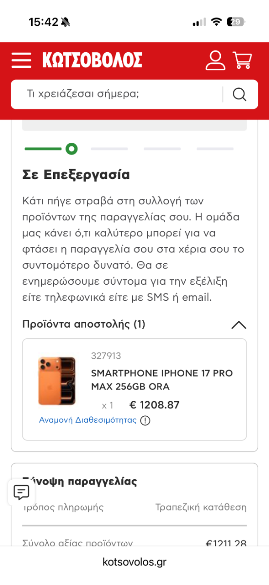 defodio Δημοσ. πριν από 2 ώρες Δημοσ. πριν από 2 ώρες Μόλις ήρθε mail από iStorm, παραλαμβάνω αύριο iPhone 17 Pro Max 256GB Silver με courier. Αριθμός παραγγελίας: 175ΧΧ 5