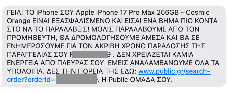 ANESTIS200 Δημοσ. 15 Οκτωβρίου Δημοσ. 15 Οκτωβρίου 1 ώρα πριν, nikos_k1 είπε Καλησπέρα σας, παραγγελία iPhone 17 Black 256GB 20/9 από πλαίσιο και παρέλαβα σήμερα το πρωί. Εγώ που έκανα στις 2/10 δηλαδή ακριβώς το ίδιο θα παραλάβω σε 12 μέρες από τώρα? Ωραία. Μήπως σου έστειλαν κανένα μήνυμα στο viber με κωδικό παραγγελίας? Και αν ναι πότε?