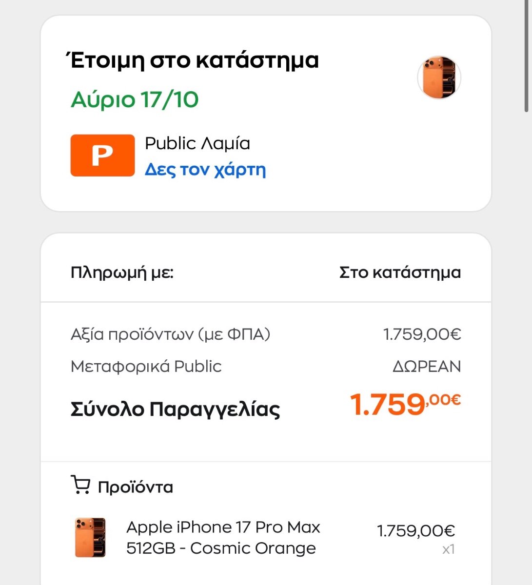 newtron Δημοσ. Παρασκευή στις 01:31 μμ Δημοσ. Παρασκευή στις 01:31 μμ 58 λεπτά πριν, James. είπε https://papaxaralabous.gr/thlefwnia-tablet/kinhth-thlefwnia/smartphones/smartphone-apple-iphone-17-pro-max-69-256gb-5g-silver?ref=bestprice.gr Χωρις ιχνος διαφημισης, απλα στην αναζητηση βρηκα αυτο. 17 pm ασημι 256 αμεσα διαθεσιμο Παιδιά πριν κάνετε παραγγελία ρωτήστε στο τηλ. Την προηγούμενη Παρασκευή πήγα να το πάρω απο κει το πορτοκαλί, μίλησα 14.30 και λόγω της πληρωμής με Κλαρνα θα κάναμε πατέντα. Μέχρι τις 6 είχαν εξαφανιστεί τα 3 κομμάτια. Και εν τέλει Τρίτη μίλησα γιατι θα είχαν παραλαβή και δεν έκαναν και ακυρωσαμε τα πάντα