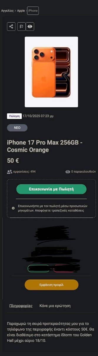 Subrosaval Δημοσ. Σάββατο στις 01:12 πμ Δημοσ. Σάββατο στις 01:12 πμ 7 λεπτά πριν, Mitsos_The_Great είπε Αυτό δεν είναι τίποτα... Μέλος με 50+ θετικές αξιολογήσεις εδώ μέσα του έστειλα (ο μαλάκας) 1.500ε για το iPhone 17 PM και έλαβα άδειο κουτί...Αναμένω τον δικηγόρο μου για όλες τις νομικές ενέργειες μαζί με επίσημο έγγραφο από την courrier πως έλαβα κενό κουτί. Τα υπόλοιπα μόλις τελειώσει η νομική διαδικασία. WTF ήμαρτον !!!