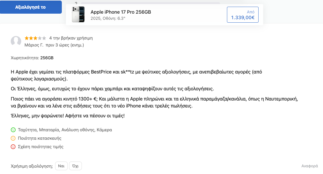 Mr.kostas Δημοσ. πριν από 5 ώρες Δημοσ. πριν από 5 ώρες Καλησπερα εγώ είχα κάνει προ παραγγελία από της 18/9 το pro max 256gb deep blue στον Κωτσόβολο και την Δευτέρα το ακυρώνω γτ μου είπαν ότι εχουνε διαθέσιμο με τα 512gb και θα το φέρνανε σήμερα και θα μου ερχόταν σήμερα sms για παραλαβή και δεν μου ήρθε τπτ και μεσα στο status εκεί που έλεγε για αναμονή sms έφυγαν τα πάντα μαζί και η πράσινη μπάρα που έδειχνε και καλά την πορεία και πάω από κοντά και τους λέω τι γίνετε με το κινητό και ευτυχώς το είχαν φέρει και το πήρα… απλά καλό θα είναι όσοι περίμενετε για τς pre orders κάντε μια βόλτα στα καταστήματα γτ ίσως υπάρχει αποθέματα