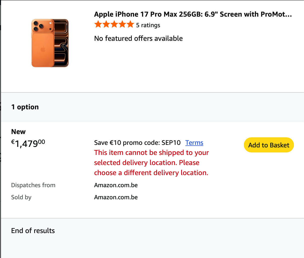 ktsak Δημοσ. 25 Σεπτεμβρίου Δημοσ. 25 Σεπτεμβρίου (επεξεργασμένο) 6 λεπτά πριν, Stelaras1993 είπε https://www.amazon.com.be/dp/B0FQG1TSY1/ref=mp_s_a_1_1_sspa?crid=34EY691VP9EJG&dib=eyJ2IjoiMSJ9.nz-fk3OOnzeMj9KgJxHlGQgTUqBMDY0KVpYCFw5EYYbvyGwJZDIIeZkIH4I1ho007t4Sq8k4x89nDNOUGPpRP1JhWer8DHU8EB_7WvmAozmr1h8UfkYYhF1x-BVG-CktaGTjr2cgLiRojtpQksQ1xcIwLuNjYT8l5gp8pga5q9UgRLVQeXTcbyGomaHi87JV3YrkHNFTktDtmi6Cvli3-A.-dK1z9B6GqqJ27hbtdTpEIFHadxG5LNrsU6keok70D0&dib_tag=se&keywords=iphone%2B17%2Bpro%2Bmax&qid=1758816175&sprefix=iphone%2B17%2Bpro%2Bma%2Caps%2C191&sr=8-1-spons&sp_csd=d2lkZ2V0TmFtZT1zcF9waG9uZV9zZWFyY2hfYXRm&psc=1&th=1 2 μέρες και δεν φεύγουν μην κοιμάστε!! 🫡 δεν θέλω μπλε αλλιως το είχα χτυπήσει , χθες βράδυ για μια ώρα βρήκα και 4 ασήμι αλλα μέχρι να βρω τον ξάδερφο να τα παρουμε Με τιμολόγιο είχαν φύγει ! Thank me later Οτι νάναι. Φίλε δεν έρχεται ούτε Ελλάδα ούτε και σε άλλη ευρωπαϊκή χώρα πλην Βελγιου Επεξ/σία 25 Σεπτεμβρίου από ktsak 3