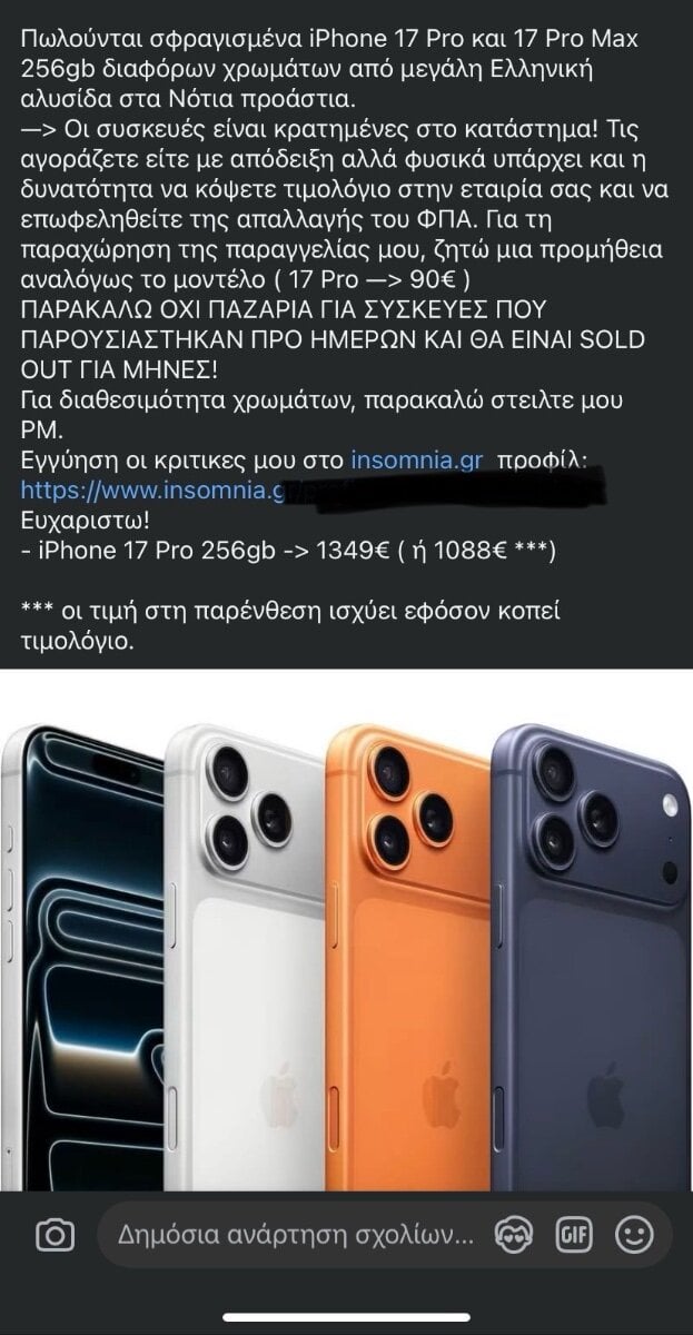 bill_2 Δημοσ. 27 Σεπτεμβρίου Δημοσ. 27 Σεπτεμβρίου (επεξεργασμένο) 18 λεπτά πριν, ktsak είπε Δεν έγινε μέσω Αμαζον, αλλά μέσω ελληνικής αλυσίδας, αφού το λέει. Αρα άσχετο …. Παρόλα αυτά επηρεάζει όλους εμάς που προσπαθούμε να πάρουμε πο Ελλάδα μια συσκευή και δεν μπορούμε να πάρουμε σειρά λόγω μη αποθέματος, από κάτι τέτοιους εξυπναδιαρηδες ……. εννοούσα γενικά και αφορα στην αρχη και το Αmazon, τωρα κόβουνε πολλες παραγγελιες ! και της ακυρωνουν , σου λεει θα αγοραζεις 1 iphone 17 , μολις πας να παραγγειλεις ενα αλλο σου λεει εχεις ξεπερασει το οριο , έβαλε φρένο με κάποιον τρόπο σ αυτούς που πήγανε να κανουν πολλες παραγγελιες ,πράγμα που δεν εγινε εδώ . Επεξ/σία 27 Σεπτεμβρίου από bill_2