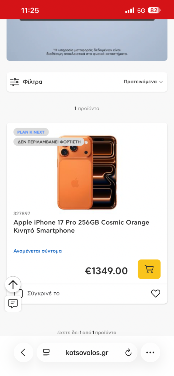 James. Δημοσ. 30 Σεπτεμβρίου Δημοσ. 30 Σεπτεμβρίου (επεξεργασμένο) Καλημερα. Γερμανικο Amazon διαθεσιμο πορτοκαλι pro max 512Gb. Eιμαι κανονικα συνδεμενος στο λογαριασμο, οποτε ναι ειναι διαθεσιμο. Απο ολα τα χρωματα και τις χωρητικοτητες, μονο 512gb σε πορτοκαλι υπαρχει. Εdit. Εξαφανιστηκε αμεσα! Επεξ/σία 30 Σεπτεμβρίου από James.