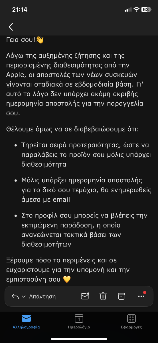 a400 Δημοσ. 1 Οκτωβρίου Δημοσ. 1 Οκτωβρίου Τώρα στο κωτσο έχει pm ασημί 256 ετοιμοπαράδοτο μπορείς να κάνεις αγορά. Όσοι το έχουμε προπαραγγείλει καμία ενημέρωση…τι γίνεται;