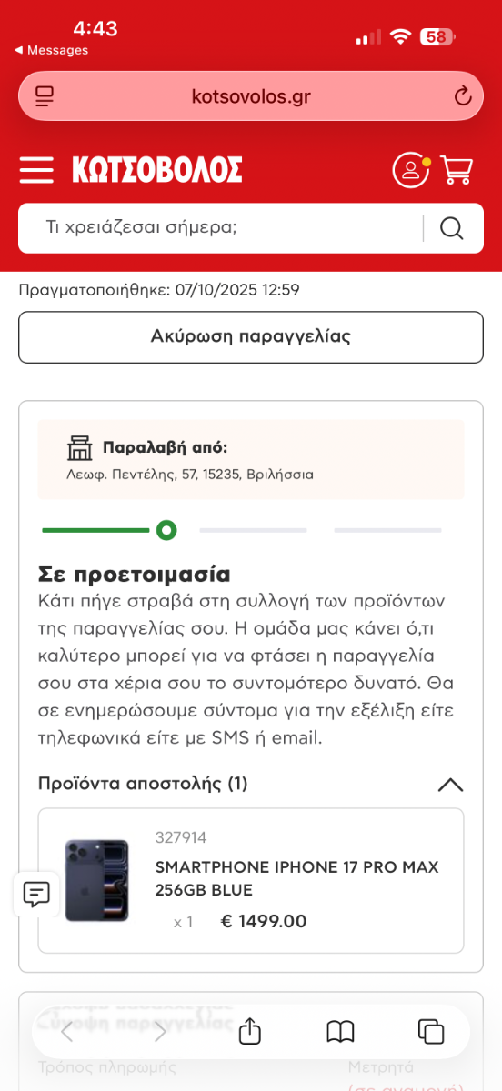 George18692 Δημοσ. Τρίτη στις 03:41 μμ Δημοσ. Τρίτη στις 03:41 μμ Καλησπερα,μολις καταφερα να μιλησω μετα απο τεραστια αναμονη με την εξυπηρετηση του Κωτσου,εχω παραγγειλει 12/9 ΠΜ 256 ΣΙΛΒΕΡ το οποιο και εχω πληρωσει ολο το ποσο,βλεποντας τη συζητηση και σημερα καπου πηρε το ματι μου οτι υπαρχουν μπλε πμ διαθεσιμα,με την κοπελα που μιλησα ευγενικη αρκετα μου ειπε οτι δεν μπορει να κανει τροποποιηση της παραγγελιας,μονο ακυρωση εγω της προτεινα να κρατησει το ποσο εφοσον ειναι πληρωμενο και να κανει εκ νεου παραγγελια το μπλε,ρωταει καποιον μου λεει οτι εχει ενα εκθεσιακο καπου στην Αθηνα,αλλα και παλι πρεπει να παω να το δω,της λεω δεν πειραζει παμε σε προ και ας παρω την επιστροφη,παει ξαναρωταει και μου λεει οτι δεν γινεται η τροποποιηση,η κοπελα πραγματικα ηθελε να βοηθησει,την ρωτησα πειτε μας τουλαχιστον μια ημερομηνια πανω κατω και μου ειπε σου μιλαω ειλικρινα μακαρι να ηξερα δεν ξερω,οταν την ρωτησα ποσα εχει διαθεσιμα προ μαξ,μου ειπε οτι ειναι 7 και ολα ειναι πιασμενα αυτη τη στιγμη στην αποθηκη δεν μπορουσε να πει παραπανω,απλα μου προτεινε να μην κανω ακυρωση γιατι οπως βλεπουμε αρχιζουν και παραλαμβανουν ααρκετοι,η δικη μου παραγγελια παντως δεν εχει ενημερωθει σε διαδικασια αποστολης σε καταστημα ακομα,θα πηγαινα απο Κατερινη αλλα σκεφτηκα για να λεει 7 και ολα κρατημενα για ολη την Ελλαδα,θα χασω τζαμπα χρονο,οποτε περιμενουμε,αυτα μου ειπε αυτα σας λεω 1