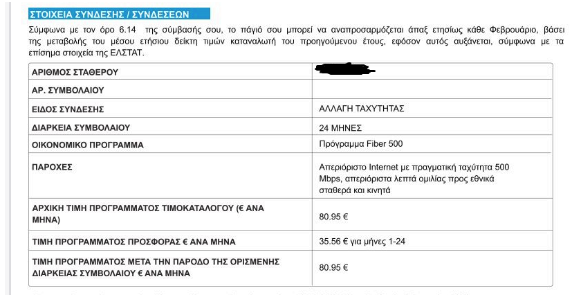 ringboy Δημοσ. Δευτέρα στις 08:43 μμ Δημοσ. Δευτέρα στις 08:43 μμ 4 ώρες πριν, kostas4. είπε Μου ήρθε και μένα προσφορά αναβάθμισης από 300 fiber που είμαι τώρα στα 500. Πάτησα αποδοχή ήρθε το συμβόλαιο στο mail μου προς υπογραφή και έγραφε τιμή 35.56€ για 24 μήνες. Όσο είναι δηλαδή η αρχική τιμή της 300άρας χωρίς το voucher. Εγώ ΜΕ το voucher πλήρωνα κλασσικά 27.22€. Μίλησα λοιπόν πριν λίγο με την εξυπηρέτηση πελατών και μου είπαν ότι το νέο συμβόλαιο το voucher ΔΕΝ μεταφέρεται. Για την 500άρα όπως είπα θα πληρώνω δηλαδή το μήνα 35.56€ όσο η αρχική της 300άρας άρα στην ουσία η αναβάθμιση δεν είναι δωρεάν και κοστίζει περίπου 8 € περισσότερο. Φυσικά δεν θα υπογράψω το νέο συμβόλαιο και θα μείνω όπως είμαι γιατί έχω άλλους 15 μήνες μειωμένη τιμή με το voucher. Μπορει και να κανω λαθος αλλα αυτο που καταλαβα ειναι οτι ακομα και αν δεν αυξηθει αμεσα, μολις τελειωσει το voucher το μηνιατικο θα παει στα 35,56.