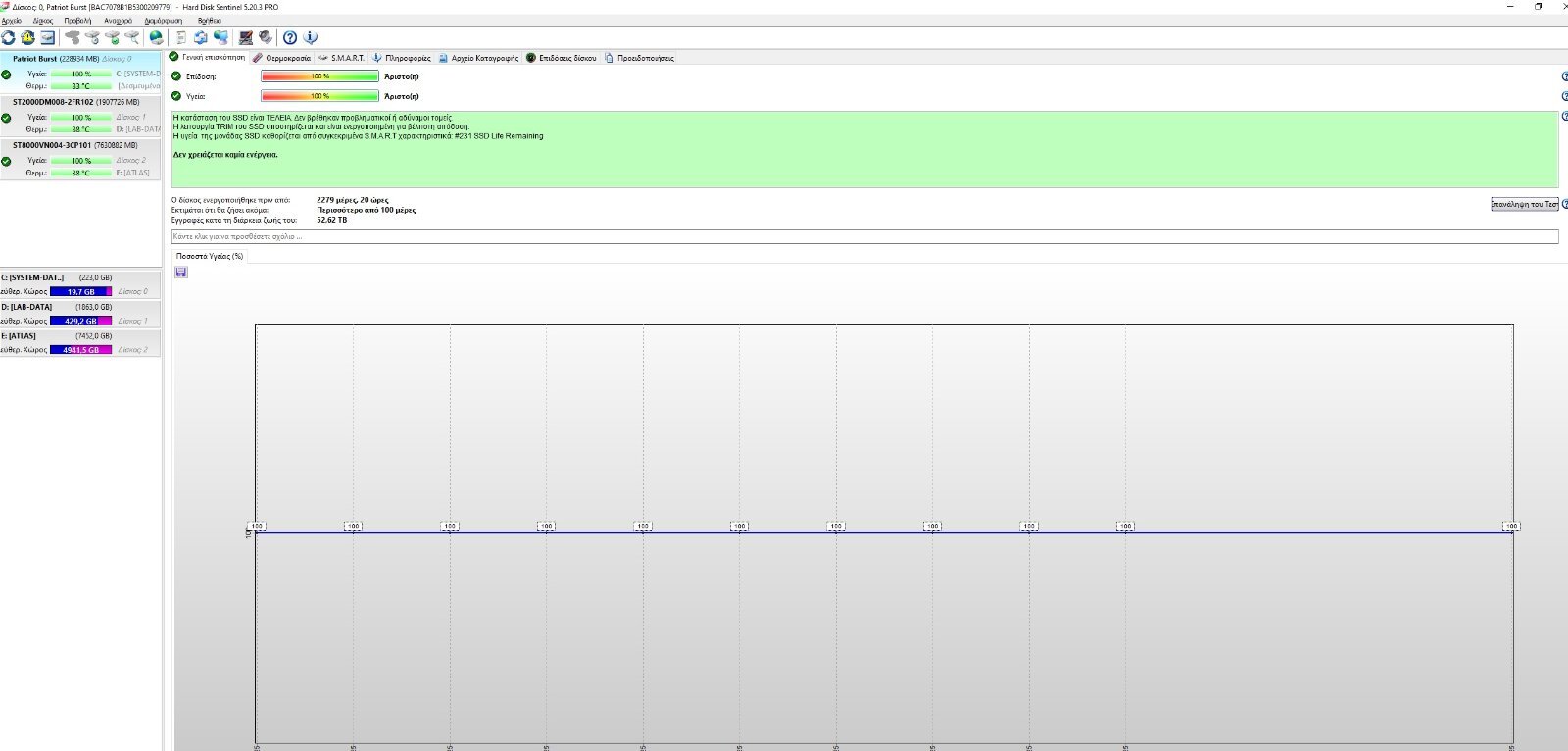 ServerStationF1 Δημοσ. Πέμπτη στις 11:35 πμ Μέλος Δημοσ. Πέμπτη στις 11:35 πμ Σίγουρα από Samsung SSD περιμένεις πολλά περισσότερα όταν έχεις δώσει και πολλά περισσότερα! Ξανατονίζω πως ο δίσκος δουλεύει περίπου 2300 ημέρες ασταμάτητα χώρια και τα 52TB που μάζεψε νομίζω τον έβαλα κάπου αρχές 2018 σε λειτουργία. Απλώς δεν περίμενα ένας SSD της τάξεως των 20-25 ευρώ να είναι τόσο καλός και μια μάρκα όσο και τόσο αξιόπιστη όπως λένε μερικοί Patriot. 1