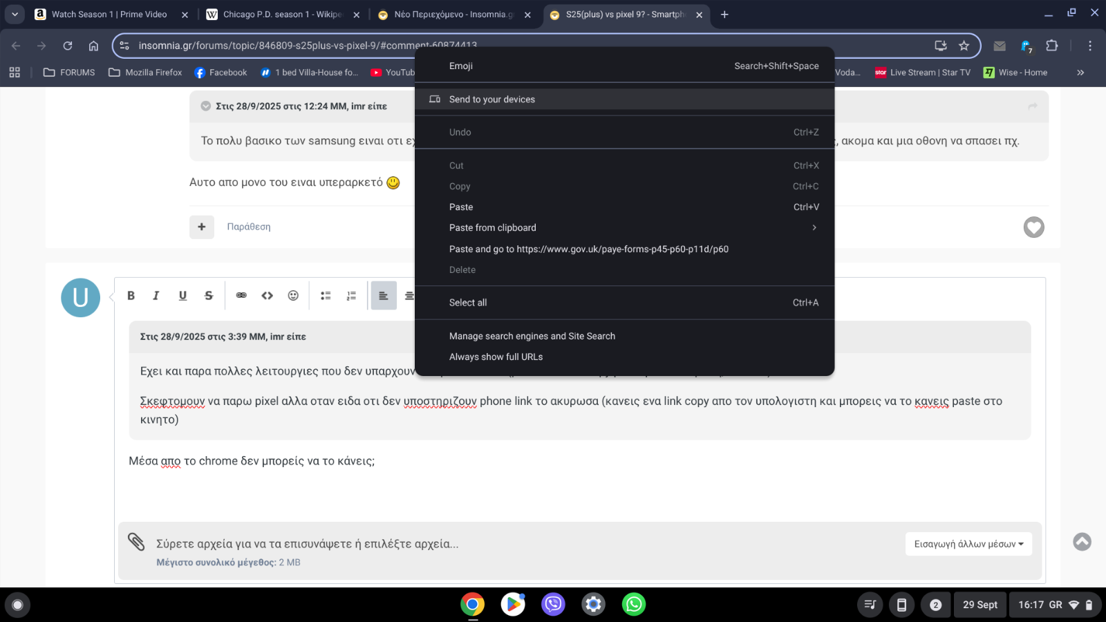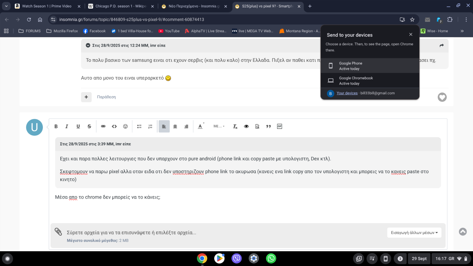 Ukforthemoment Δημοσ. Δευτέρα στις 06:20 μμ Δημοσ. Δευτέρα στις 06:20 μμ Στις 28/9/2025 στις 3:39 ΜΜ, imr είπε Εχει και παρα πολλες λειτουργιες που δεν υπαρχουν στο pure android (phone link και copy paste με υπολογιστη, Dex κτλ). Σκεφτομουν να παρω pixel αλλα οταν ειδα οτι δεν υποστηριζουν phone link το ακυρωσα (κανεις ενα link copy απο τον υπολογιστη και μπορεις να το κανεις paste στο κινητο) Μέσα απο το chrome δεν μπορείς να το κάνεις;(Είμαι με chromebook)
