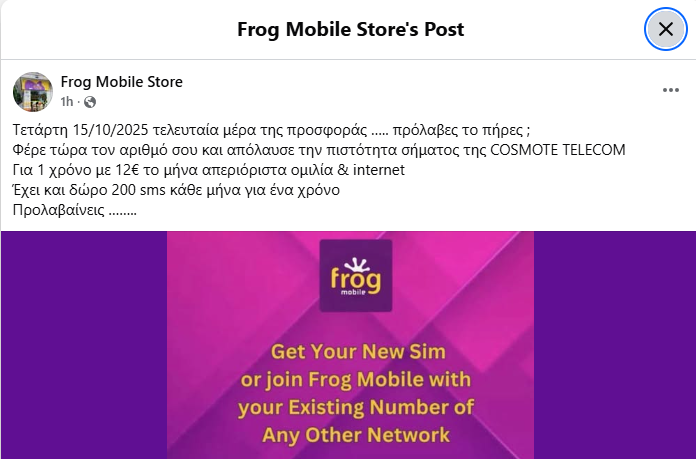 enteacher04 Δημοσ. 15 Οκτωβρίου Δημοσ. 15 Οκτωβρίου On 14/10/2025 at 12:15, stark said: Σε ευχαριστώ πολύ, πήγα σήμερα και ενεργοποίησα την προσφορά, ήταν όντως η τελευταία μέρα! Μια ερώτηση μόνο (που δυστυχώς δε σκέφτηκα να ρωτήσω όταν ήμουν στο μαγαζί): Αν αποφασίσω σε ένα χρόνο από τώρα ότι δε θέλω πλέον αυτόν τον αριθμό από τη frog, χρειάζεται να κάνω κάτι για να τον καταργήσω; Θα προσπαθήσει να με χρεώσει αυτόματα; Ή μπορώ απλά να πετάξω την κάρτα sim , χωρίς να υπάρχει κανένα πρόβλημα;