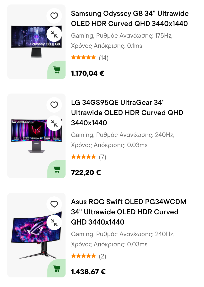 Themiss2000 Δημοσ. Παρασκευή στις 09:24 μμ Δημοσ. Παρασκευή στις 09:24 μμ (επεξεργασμένο) Το τι αξίζει και τι όχι σε τέτοιο εξειδικευμένο προϊόν μόνο εσύ το κρίνεις. Εμένα προσωπικά δε μου αρέσουν οι curved οθόνες, μία που αγόρασα δε μπόρεσα να τη συνηθίσω. Εάν θέλεις για gaming ρίξε μια ματιά και σε ultra wide. Στέλνω τυχαία κάποια μοντέλα Επεξ/σία Παρασκευή στις 09:27 μμ από Themiss2000